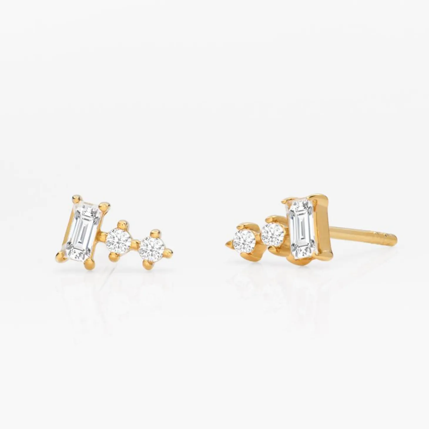 Our Baguette Cubic Zirconia Stud Earrings in Gold Vermeil are a luxurious and captivating choice. The elegant baguette-cut cubic zirconia stones set in lustrous gold vermeil create a stunning combination. These studs exude opulence and glamour, making them perfect for adding a touch of sophistication to any ensemble. Crafted with meticulous attention to detail and plated in radiant gold vermeil, these earrings are a true statement of style. Elevate your jewelry collection with these exquisite gold vermeil stud earrings, guaranteed to make a lasting impression.