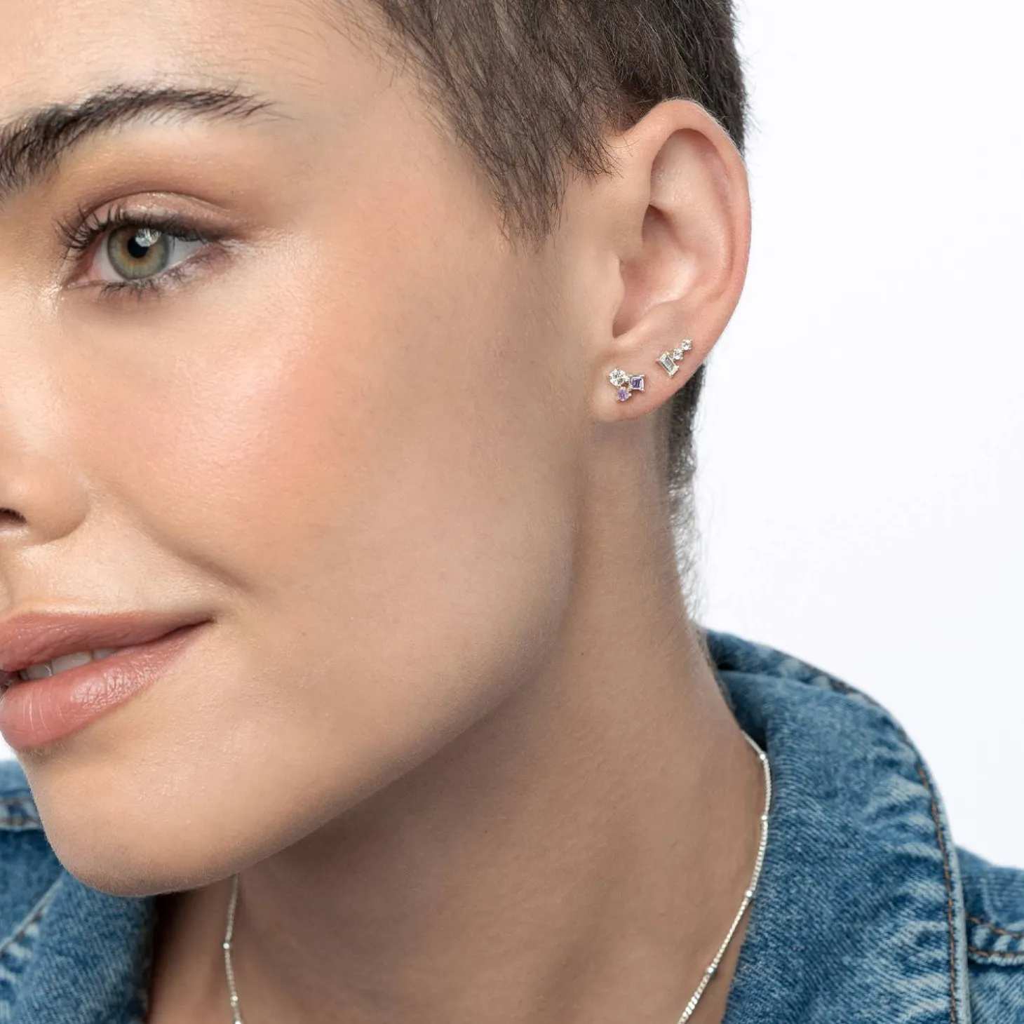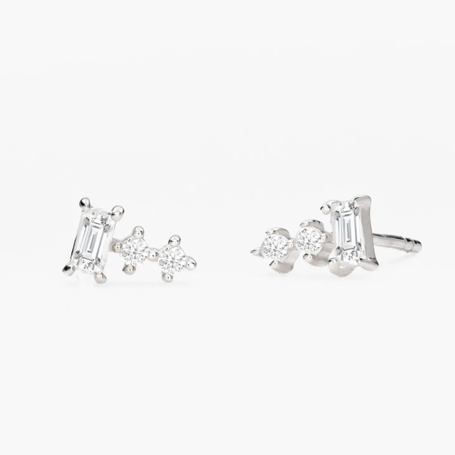 Our Baguette Cubic Zirconia Stud Earrings in Silver are a sleek and modern choice. Featuring elegant baguette-cut cubic zirconia stones, these studs exude sophistication and style. Crafted with high-quality silver, they offer both durability and a lustrous shine. The minimalist design makes them versatile for any occasion, adding a touch of understated elegance to your look. Elevate your jewelry collection with these timeless silver stud earrings, perfect for expressing your refined taste and effortless charm.