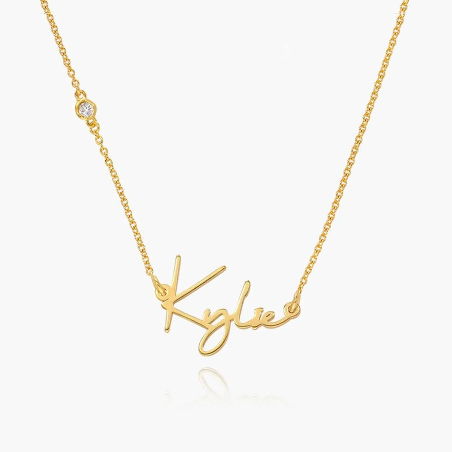 Show off your style with this gorgeous name necklace . It features a script font decorated with a brilliant diamond for that extra shimmer, all strung on a classic chain.
