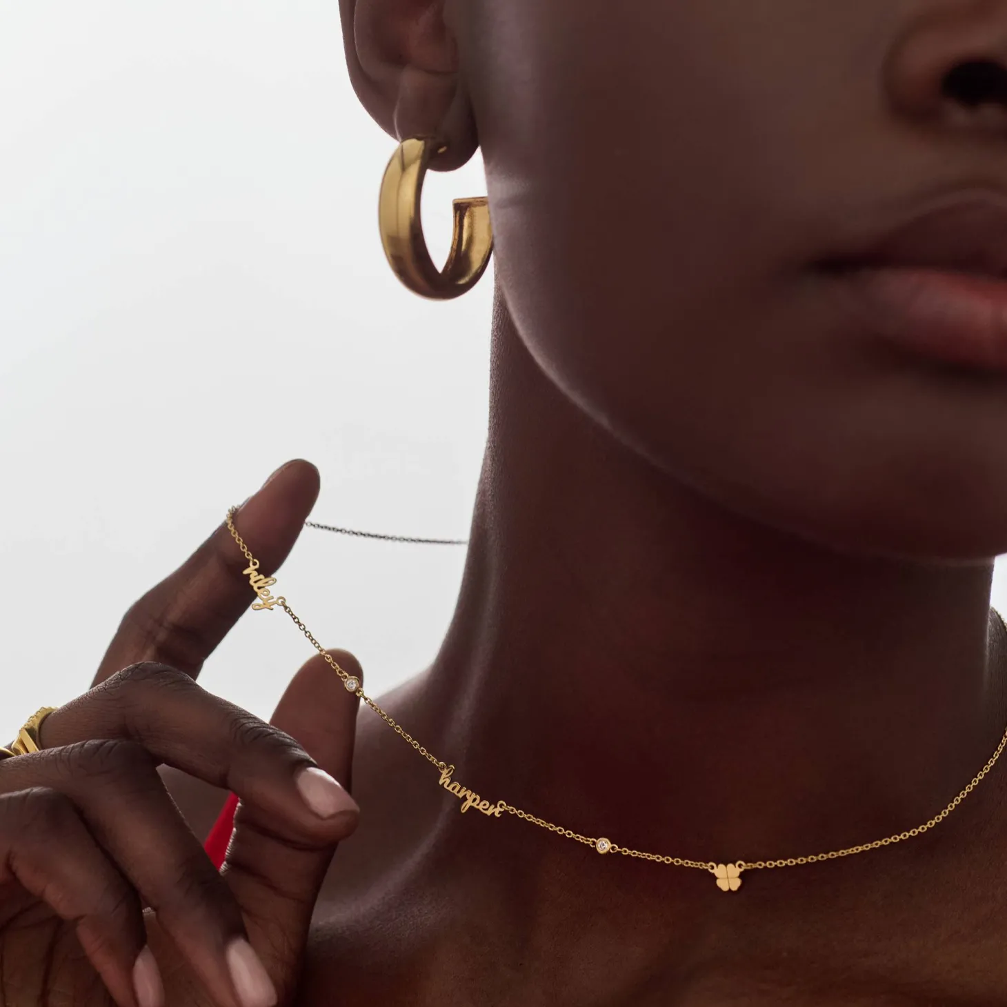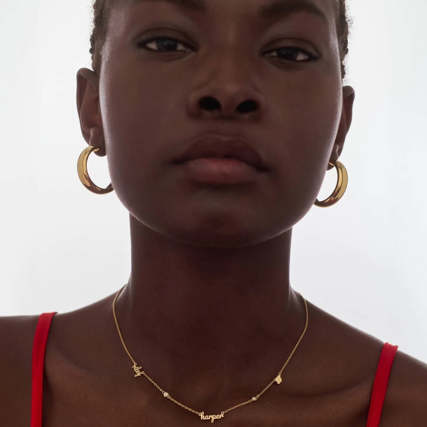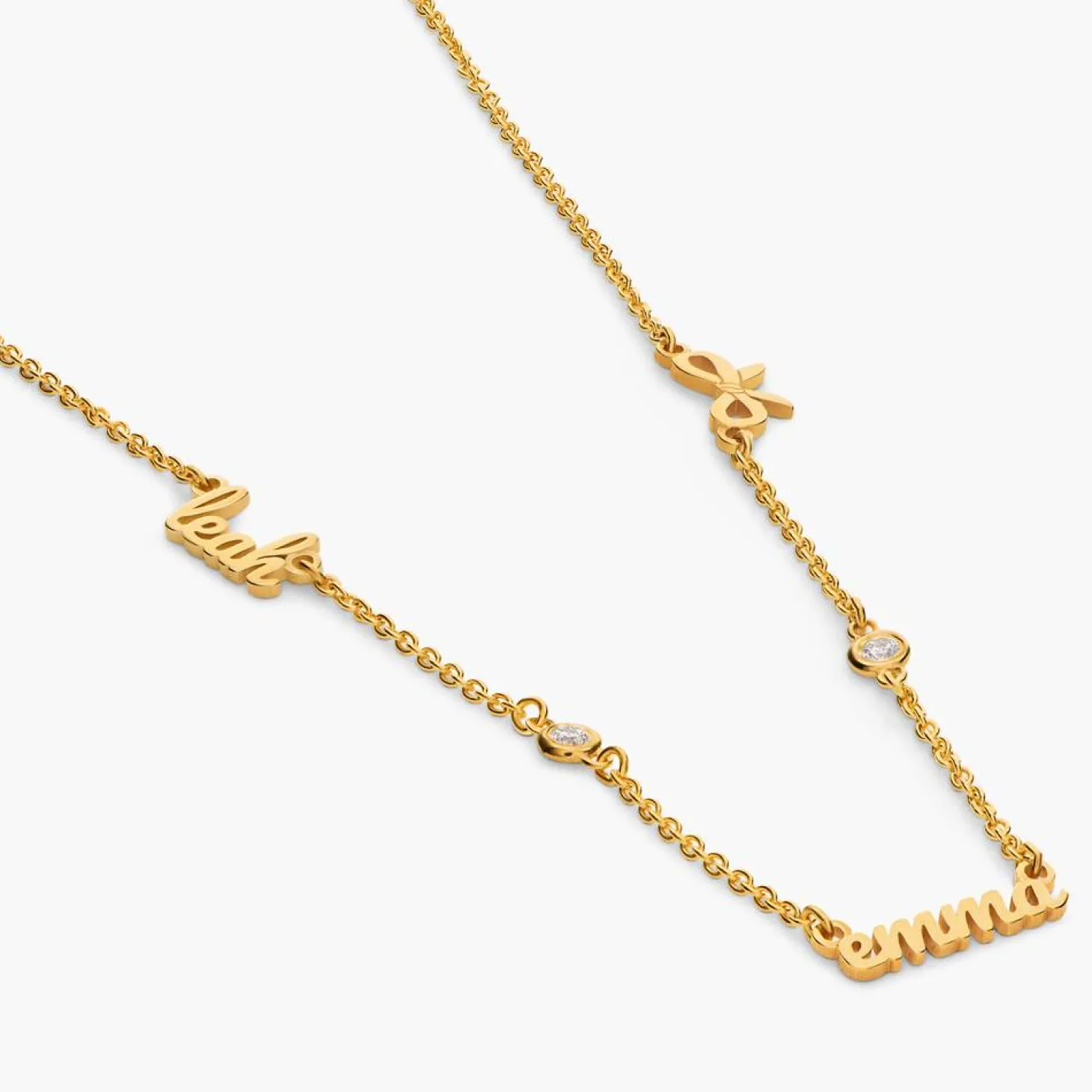 This gold vermeil necklace pairs personalization with sparkle. Add up to 3 names and 1 charm of your choice, enhanced with a dazzling diamond accent. Choose from symbols like a cross or snowflake to create a chic, heartfelt piece that shines as bright as your memories. Discover more multi name necklaces for woman in gold and silver here and shine even more wherever you go.
