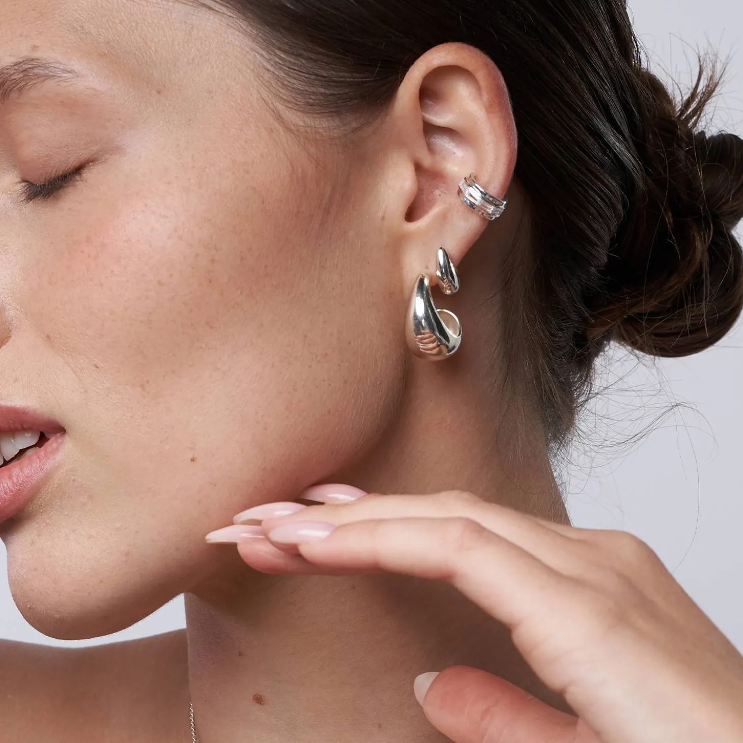 Elevate your elegance with our Classic Dome Huggie in stunning Silver.
