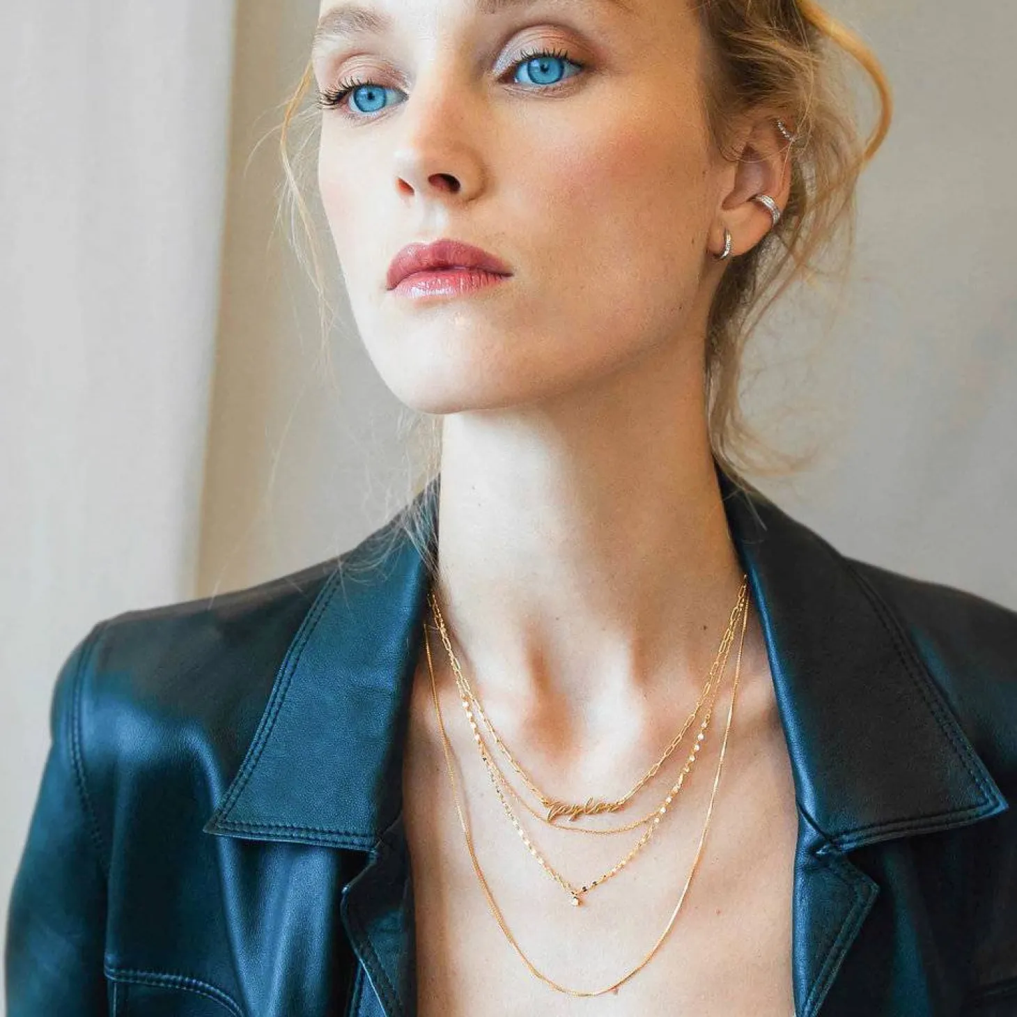 The Coco Name Link Necklace in Gold Vermeil adds a new and unique touch to a classic link chain with its option of customizing with the word or name of your choice with a chic cursive scripture.