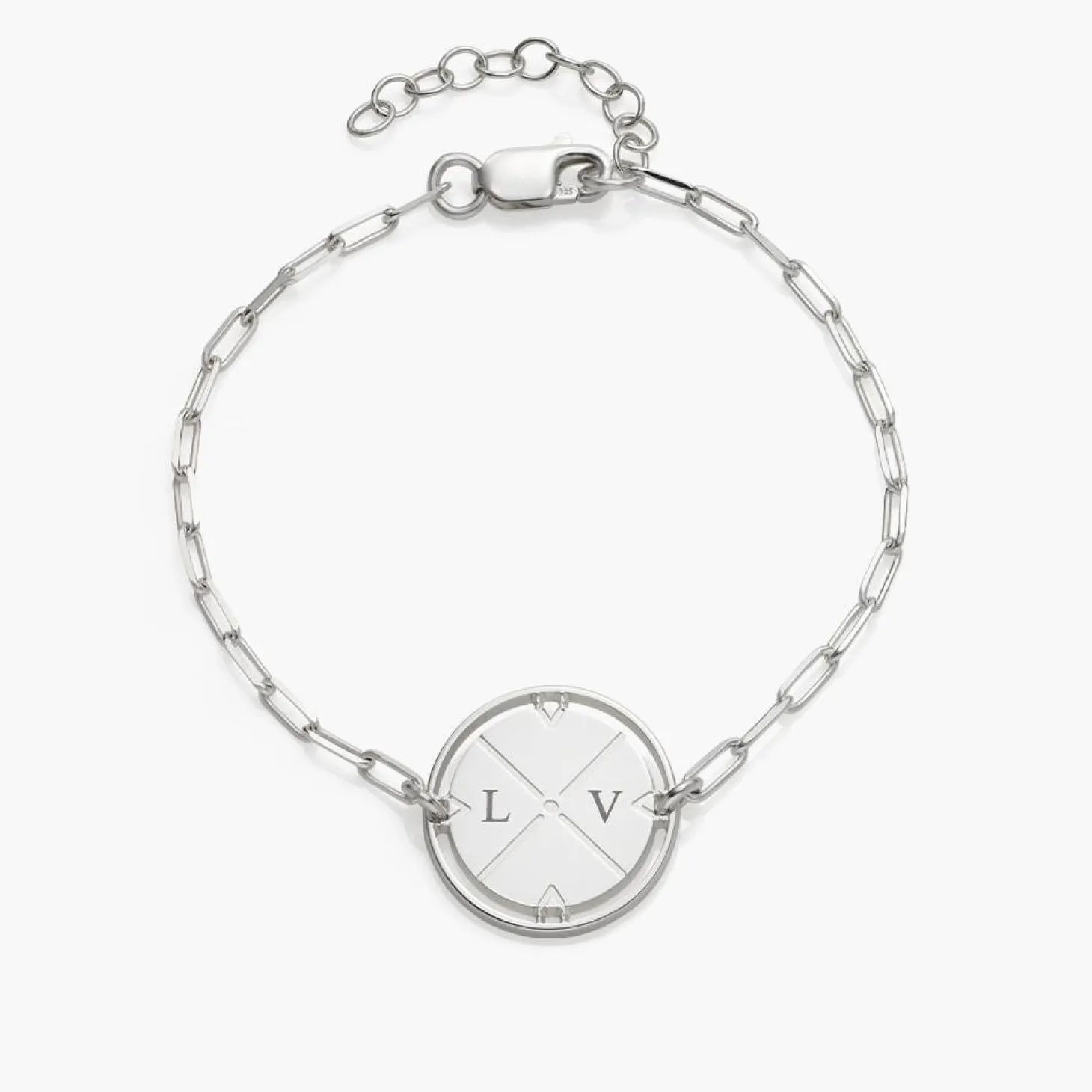 Introducing the Engraved Compass Bracelet in Silver, a perfect piece of jewelry symbolizing guidance and personal journey.