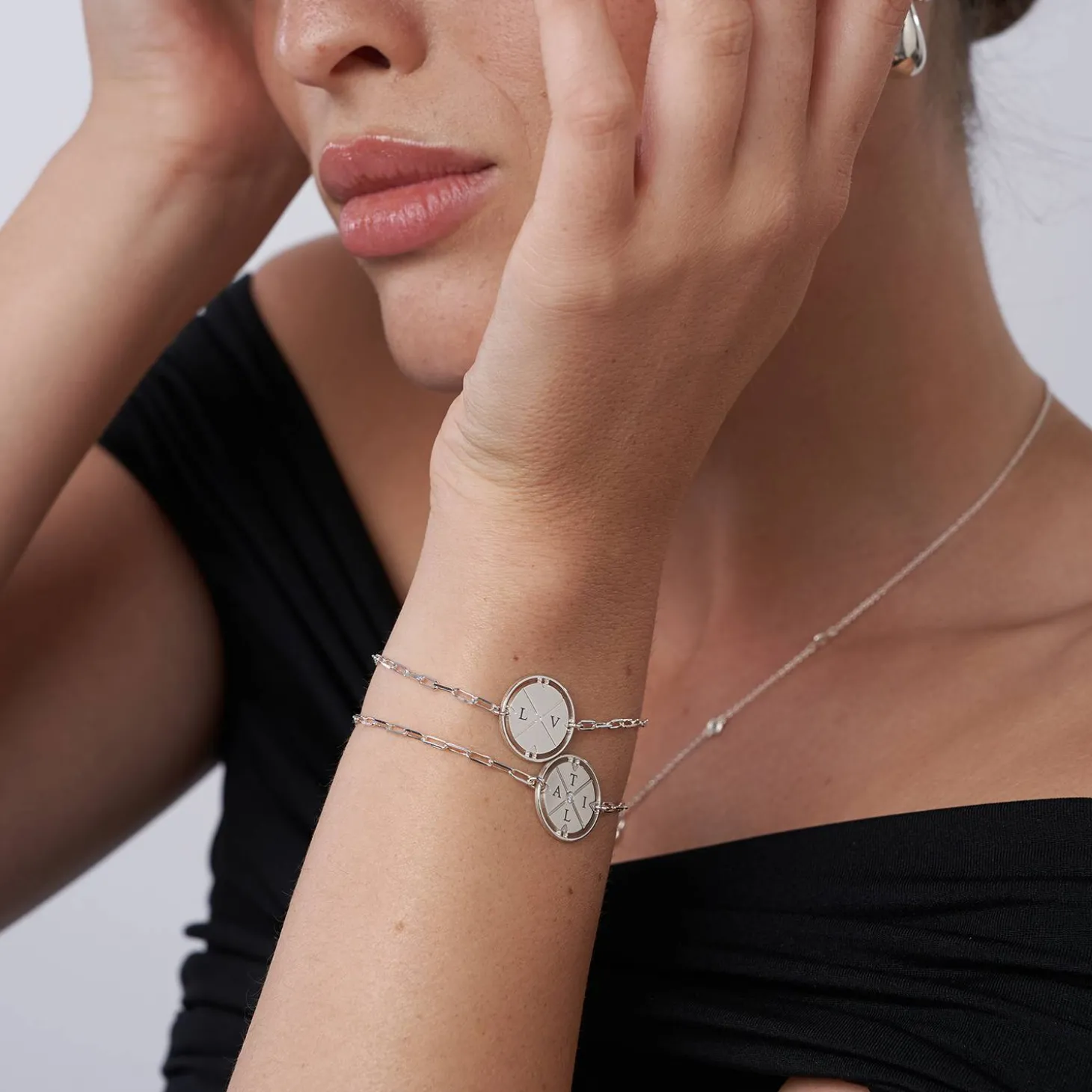 This exquisite bracelet allows you to customize it with four initials of your choice, making it a meaningful and personalized accessory. The compass motif represents safety, protection, and good luck, guiding you on your path in life and embracing independence. Crafted with elegance, this bracelet serves as a constant reminder to move in the right direction and embark on a voyage of self-discovery.