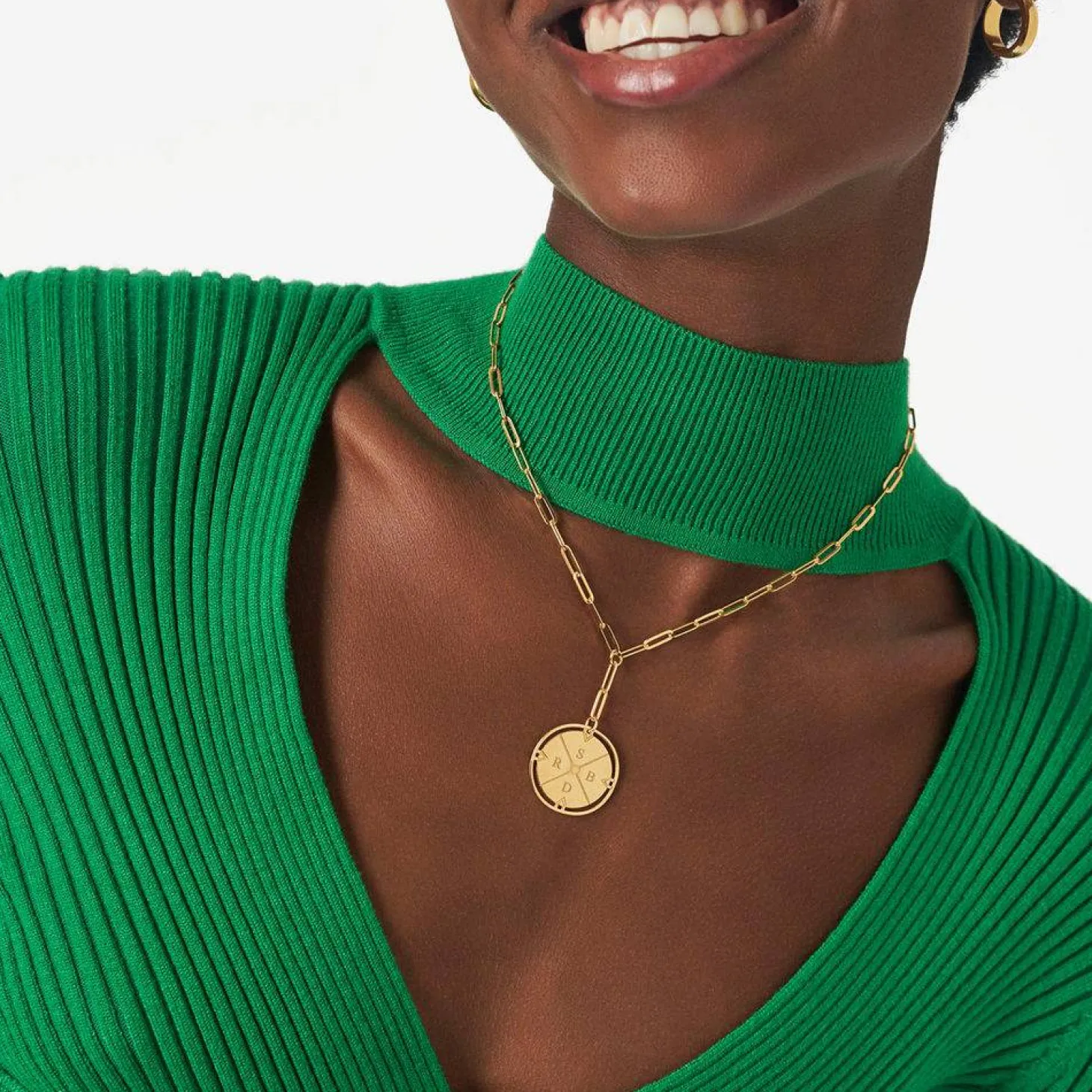 Here’s a stylish spin on your fave everyday necklace. It features a chic, oval pendant adorned serving as a canvas for your initials. Wear it with your favorite outfit and elevate your look for any occasion.