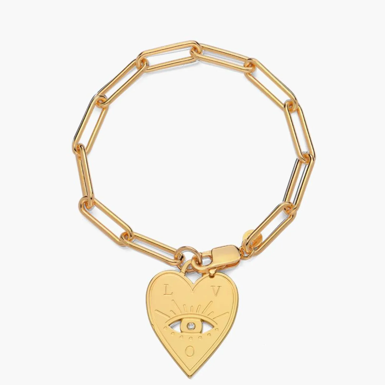 Experience the perfect blend of elegance and spirituality with our Engraved Evil Eye Heart Bracelet in Gold Vermeil, embellished with a dazzling diamond.