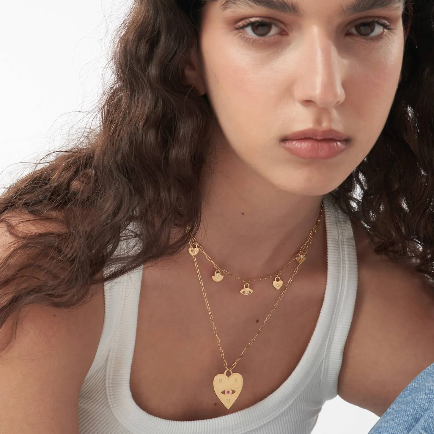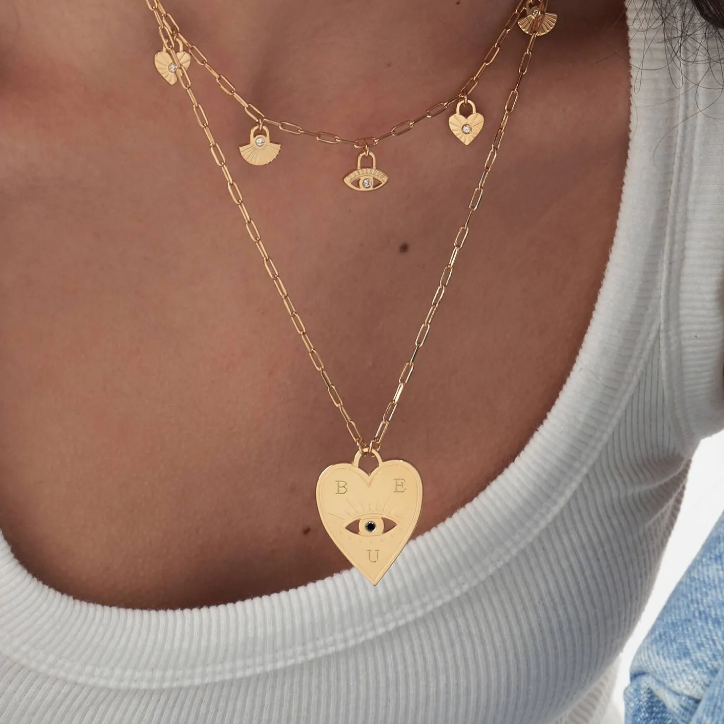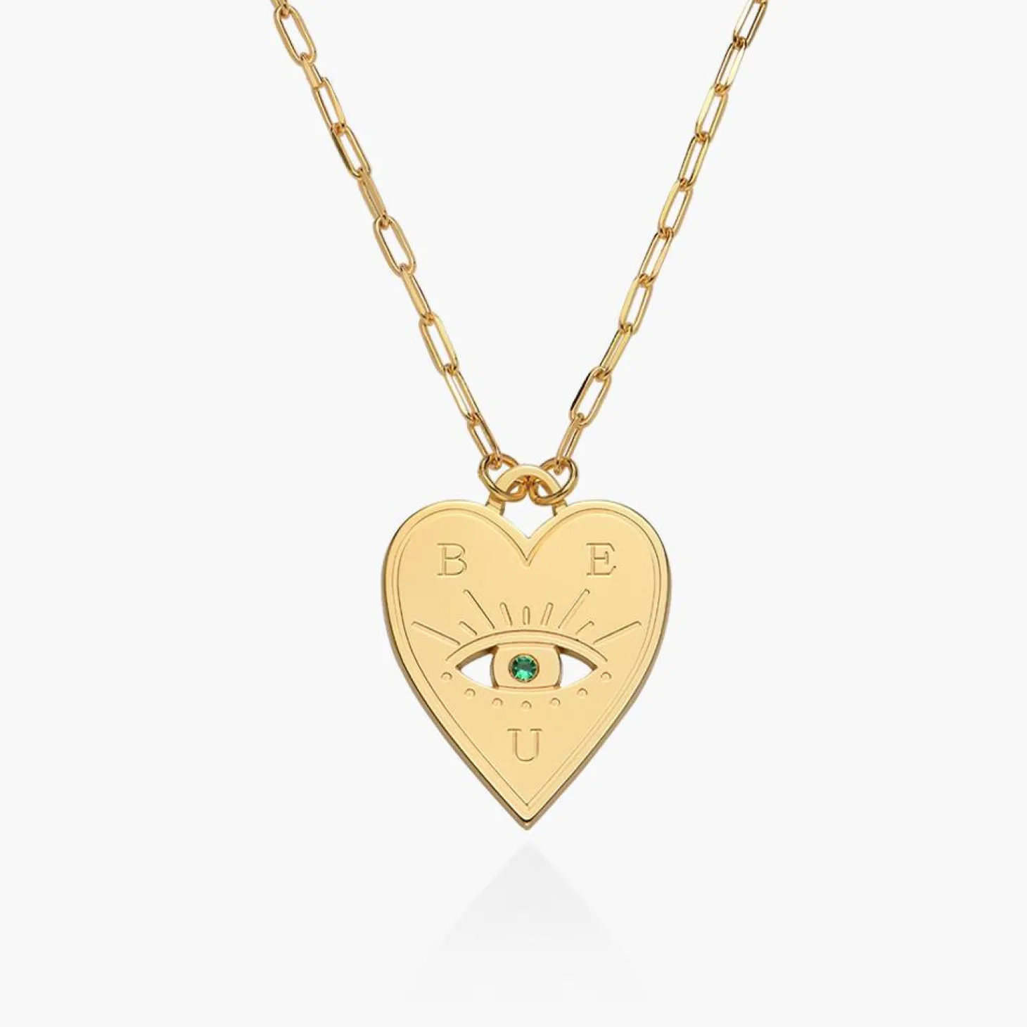 Enhance your jewelry collection with our Engraved Evil Eye Heart Necklace in Gold Vermeil.