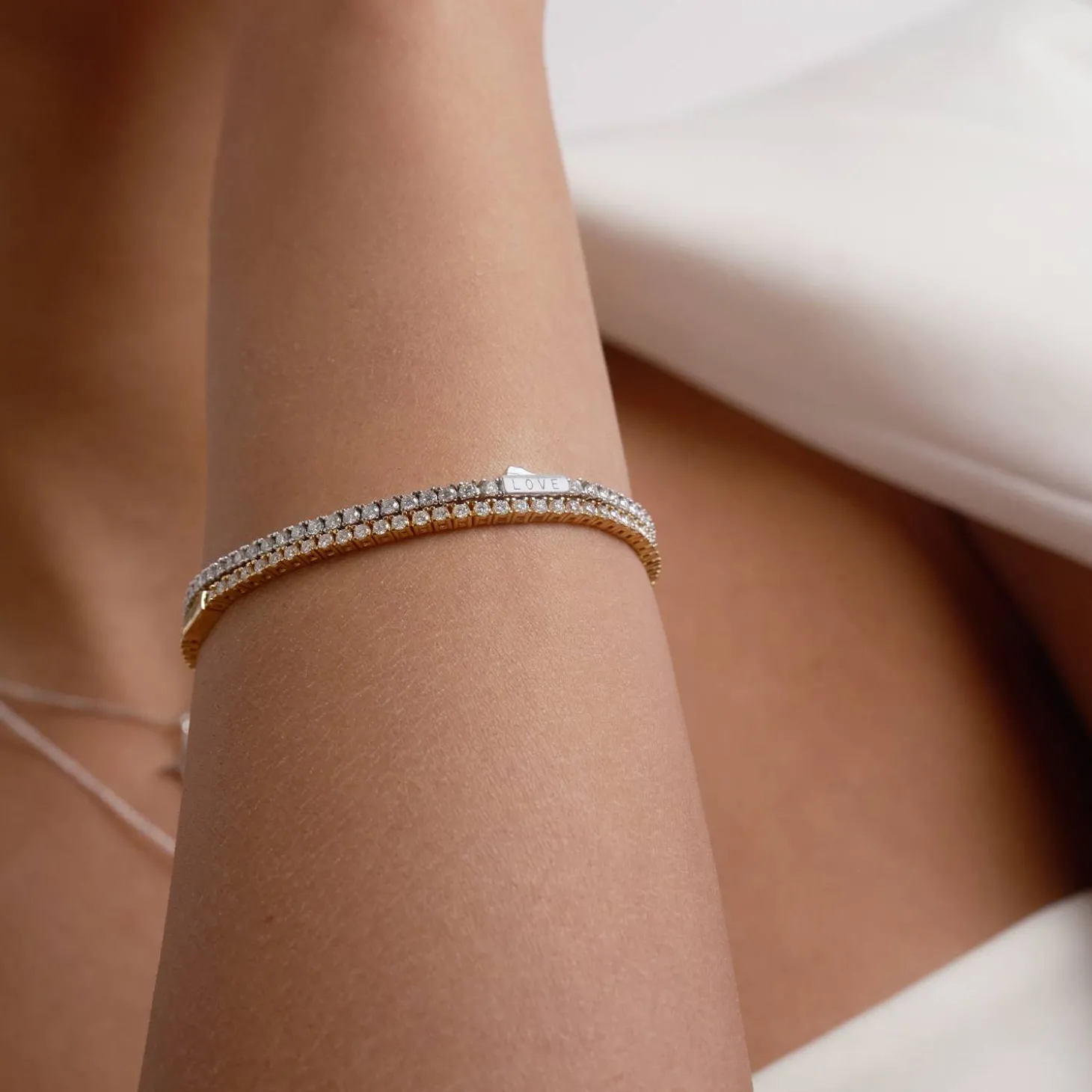 14K Solid Gold: 14K solid gold is a timeless metal. It keeps its look forever without oxidizing or changing its color, making it a must-have in your collection. Discover more of our Eco-Friendly moissanite tennis bracelets here.