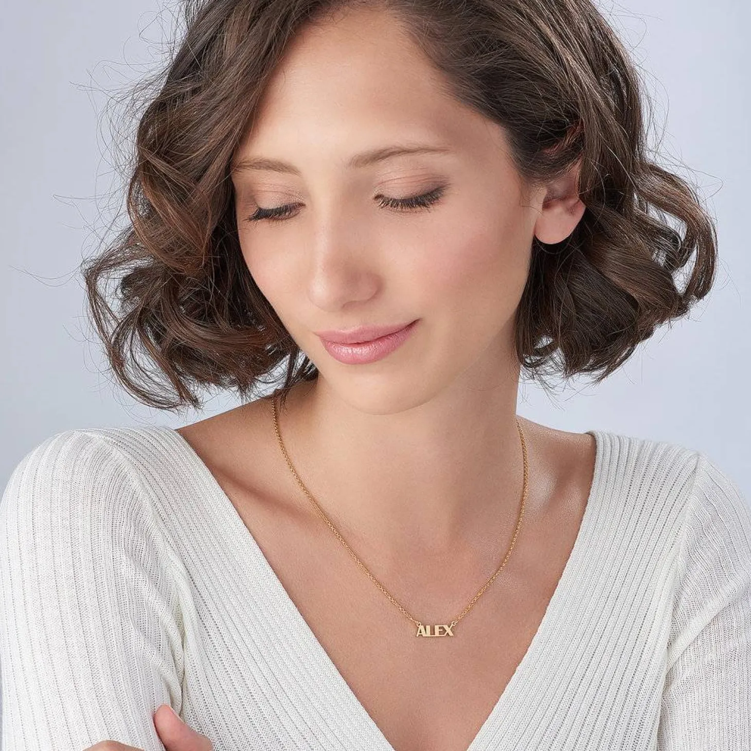 How we wear it: Our collection of name necklaces offers a variety of designs to fit any style. For this necklace, we love to layer it with other dainty chains for a curated look or on its own for a statement vibe.
