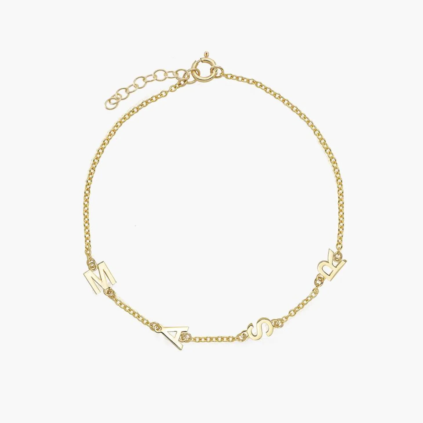 Customize Me! Customize the cable chain with one to four capital letters in a bold font.