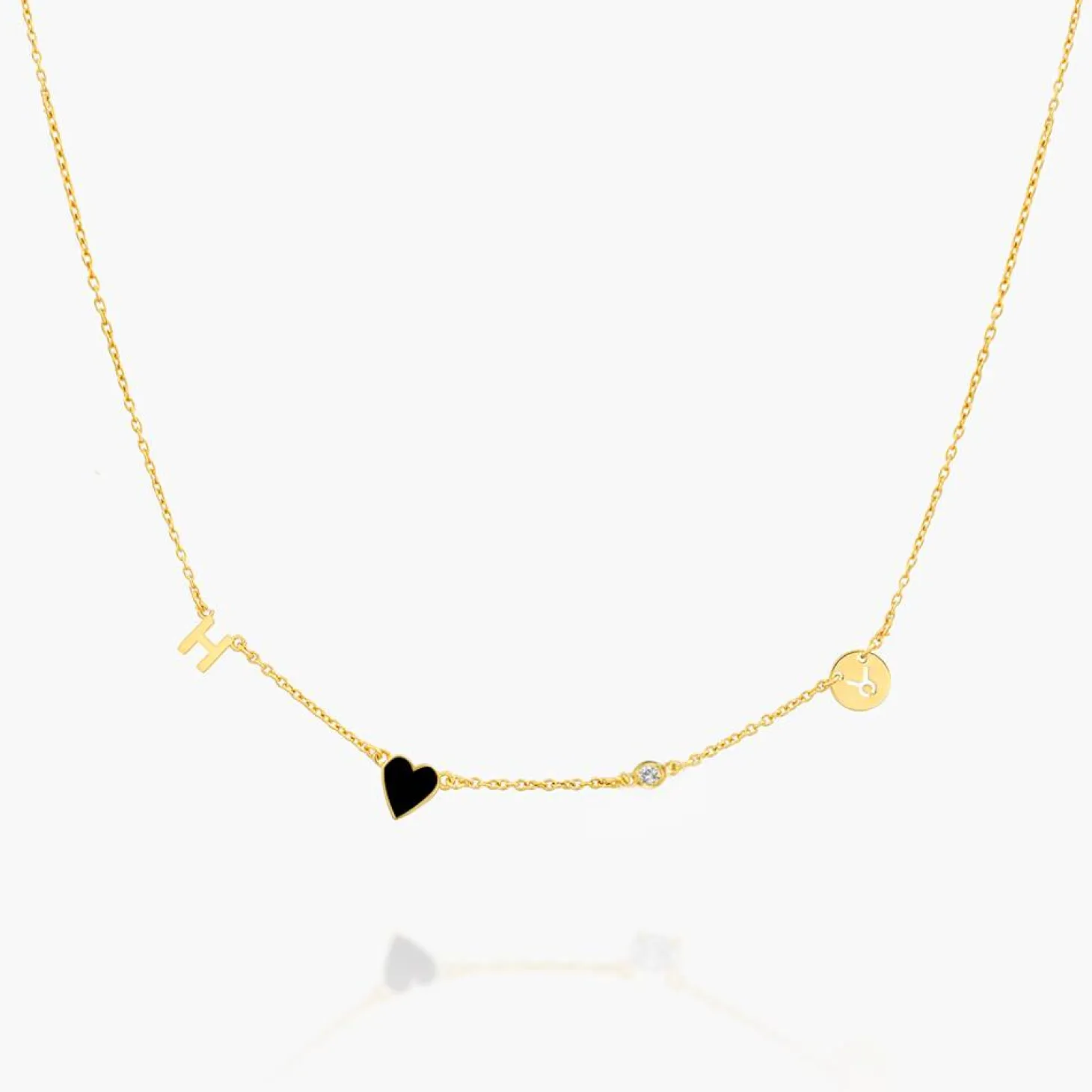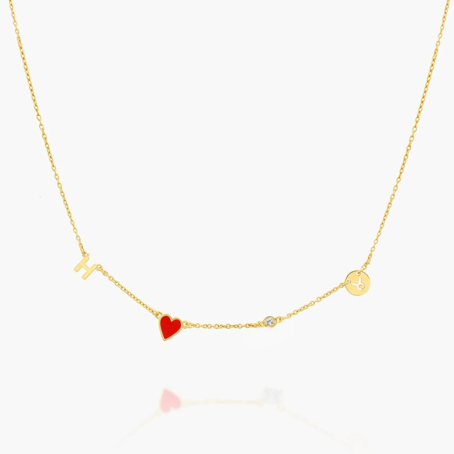 This exquisite dainty necklace exudes luxury with its shimmering 0.03 ct round diamond, delicately set in a gold vermeil setting. Personalize it with your chosen letter or zodiac sign, and let the enchanting enamel heart charm capture hearts. Elevate your style with this opulent initial necklace piece, radiating elegance and sophistication. Embrace the beauty of gold and diamonds, and make a statement that is both timeless and captivating.