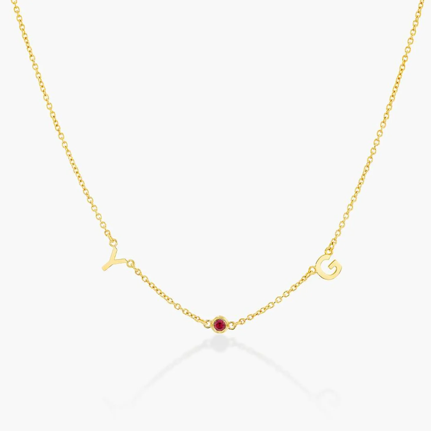 Introducing the Inez Initial Necklace with Gemstones – a stylish and meaningful piece of jewelry that showcases your individuality. Crafted in gold vermeil, this dainty necklace features 1-4 letters of your choice, each adorned with up to 3 gemstones in between.