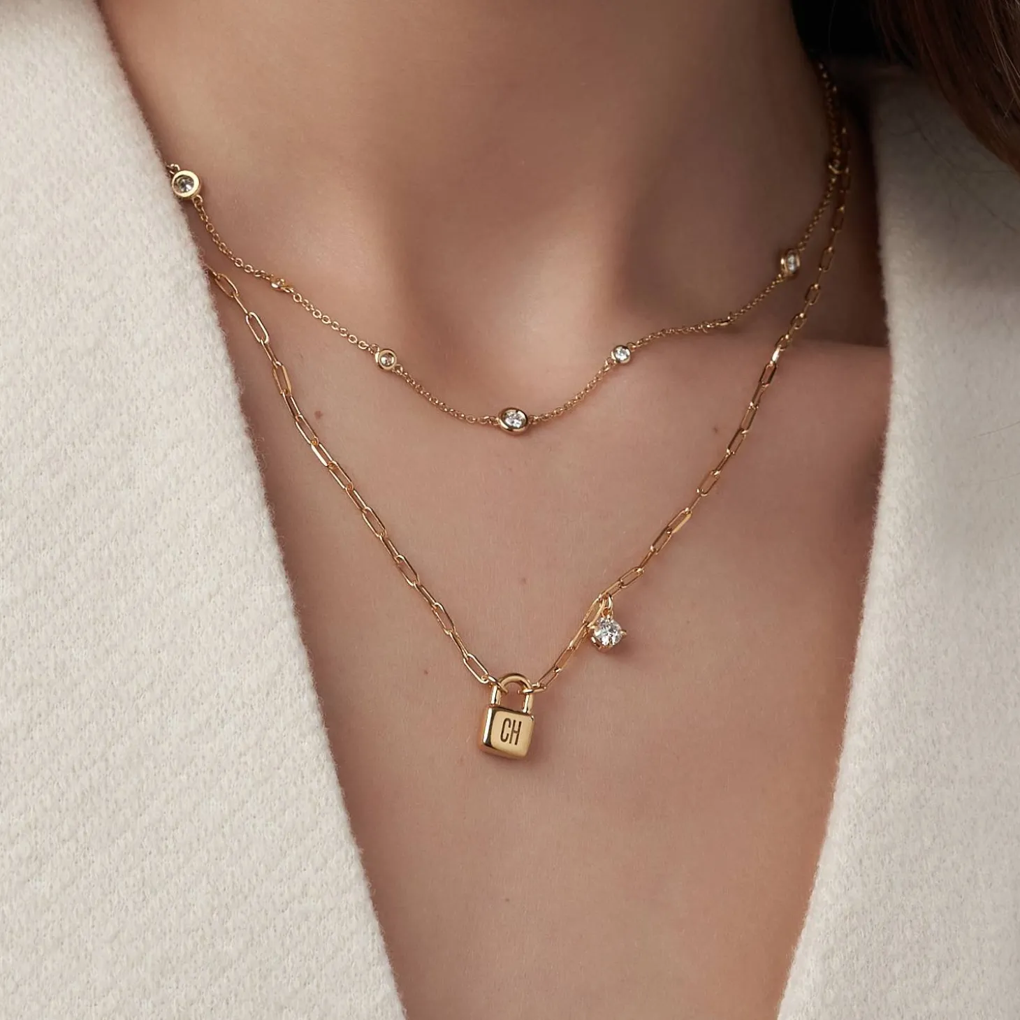 Elevate your style with our Initial Lock Necklace in luxurious Gold Vermeil, adorned with a brilliant 0.3ct diamond. Add a personal touch by engraving 1-3 initials or symbols, reflecting your unique story. This exquisite piece seamlessly blends timeless elegance with meaningful customization, making it a radiant expression of your individuality. Please note that no symbols are added by default.