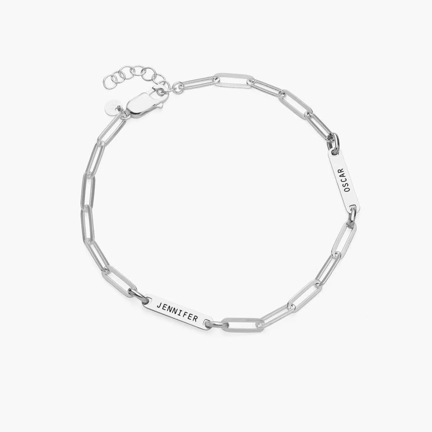 The Ivy Name Paperclip Chain Anklet – Sterling Silver is a piece of art that comes fully personalized. Add the names of you and/or loved ones to 1-2 bar tags – the perfect amount of space to customize it while enjoying a simply stunning, delicate look.