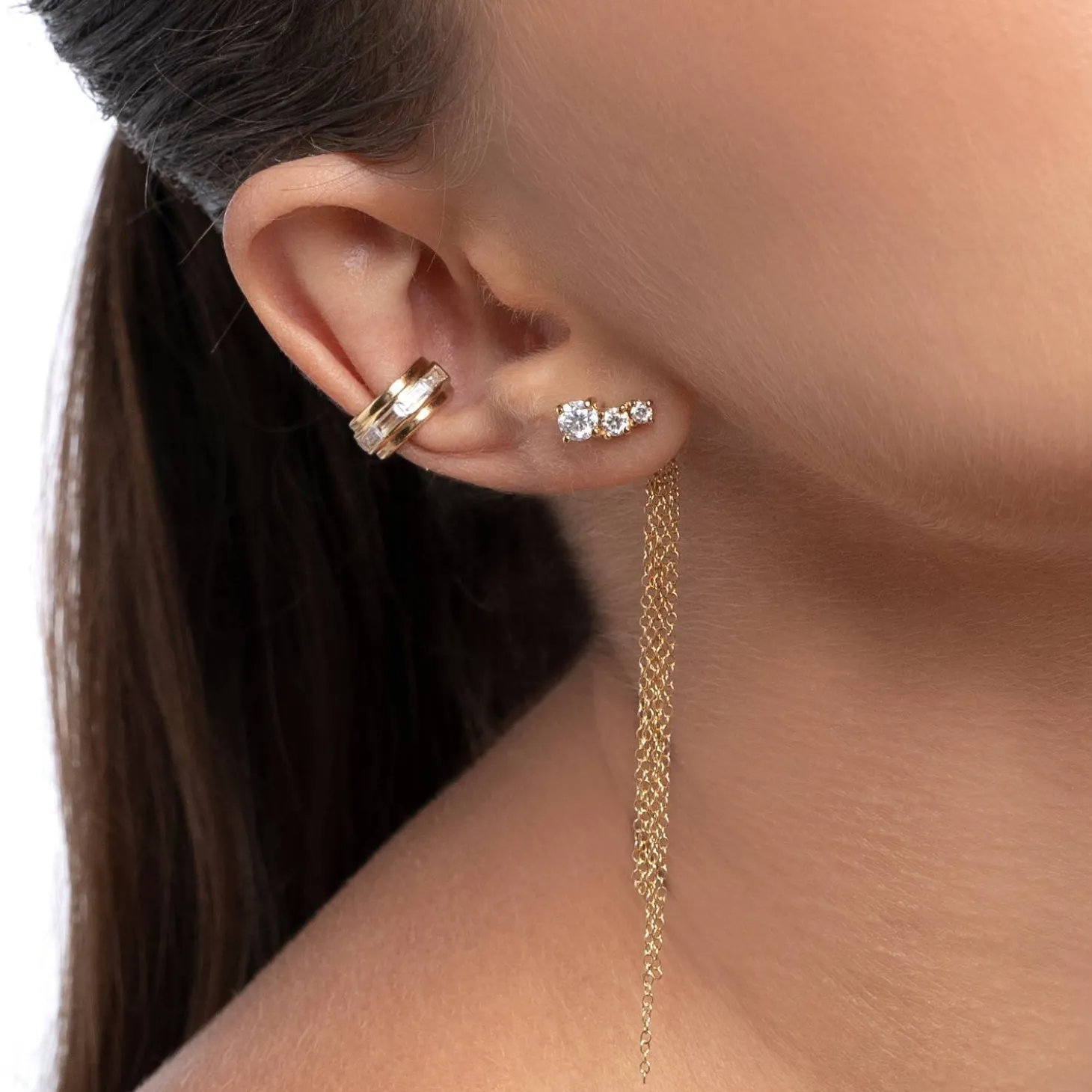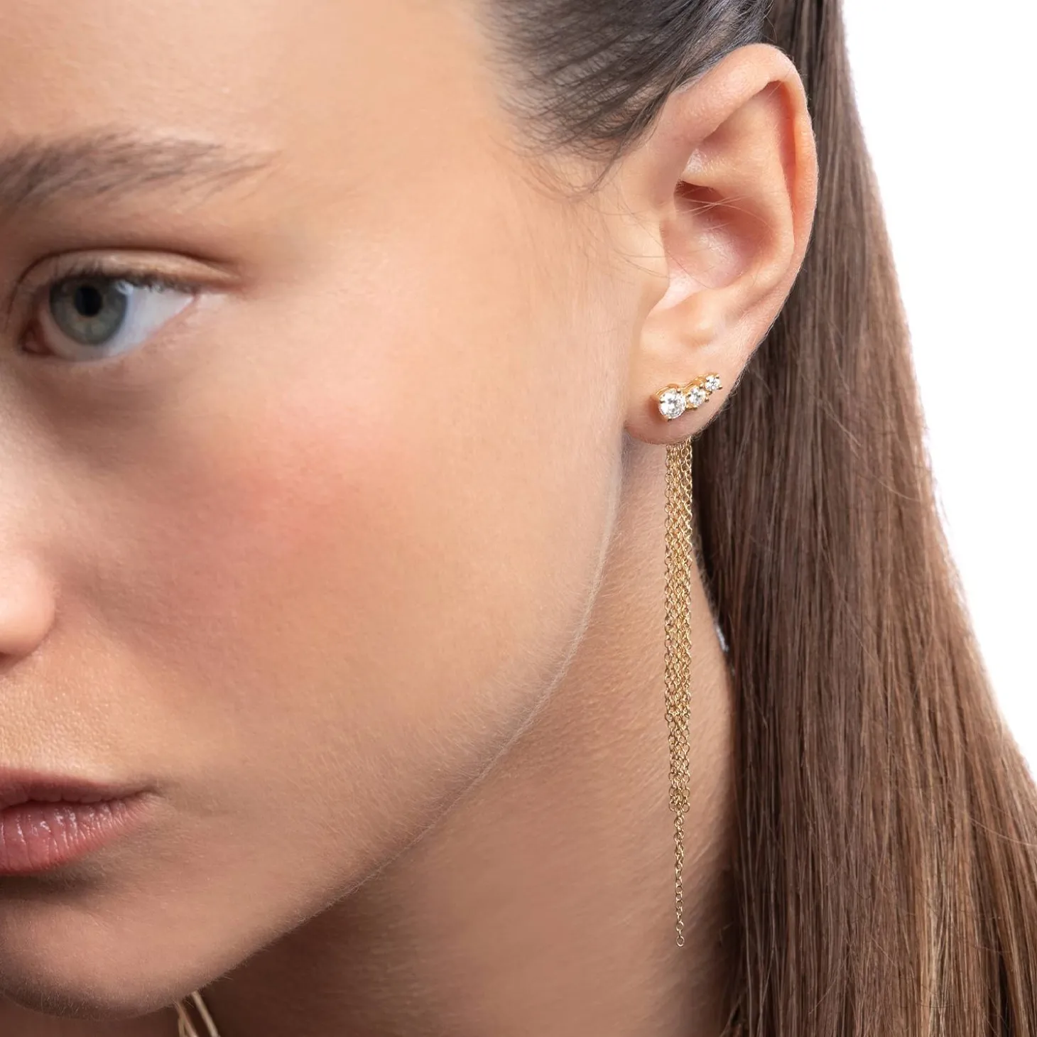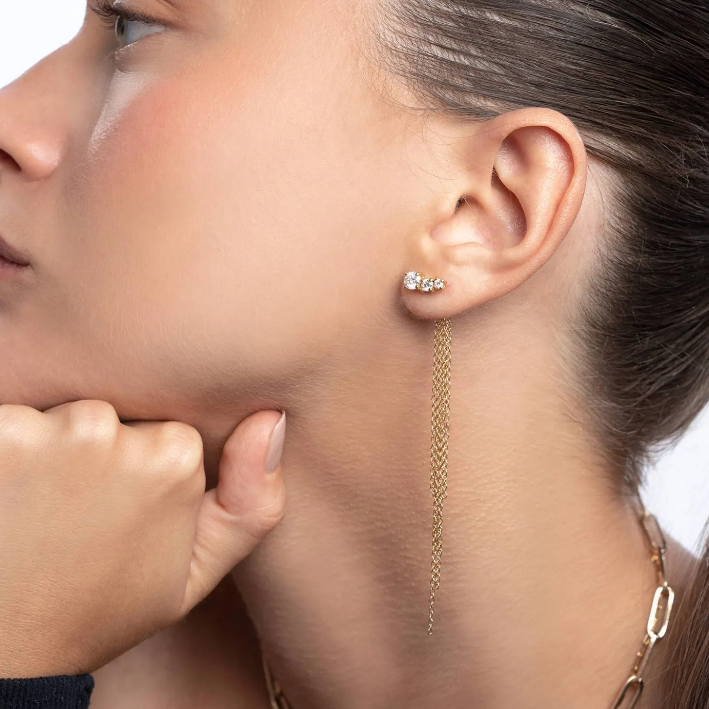Embark on a journey of opulence with our Mimosa Tassel Single Stud, adorned with a trio of captivating 0.45 CT Diamonds in Gold Vermeil.