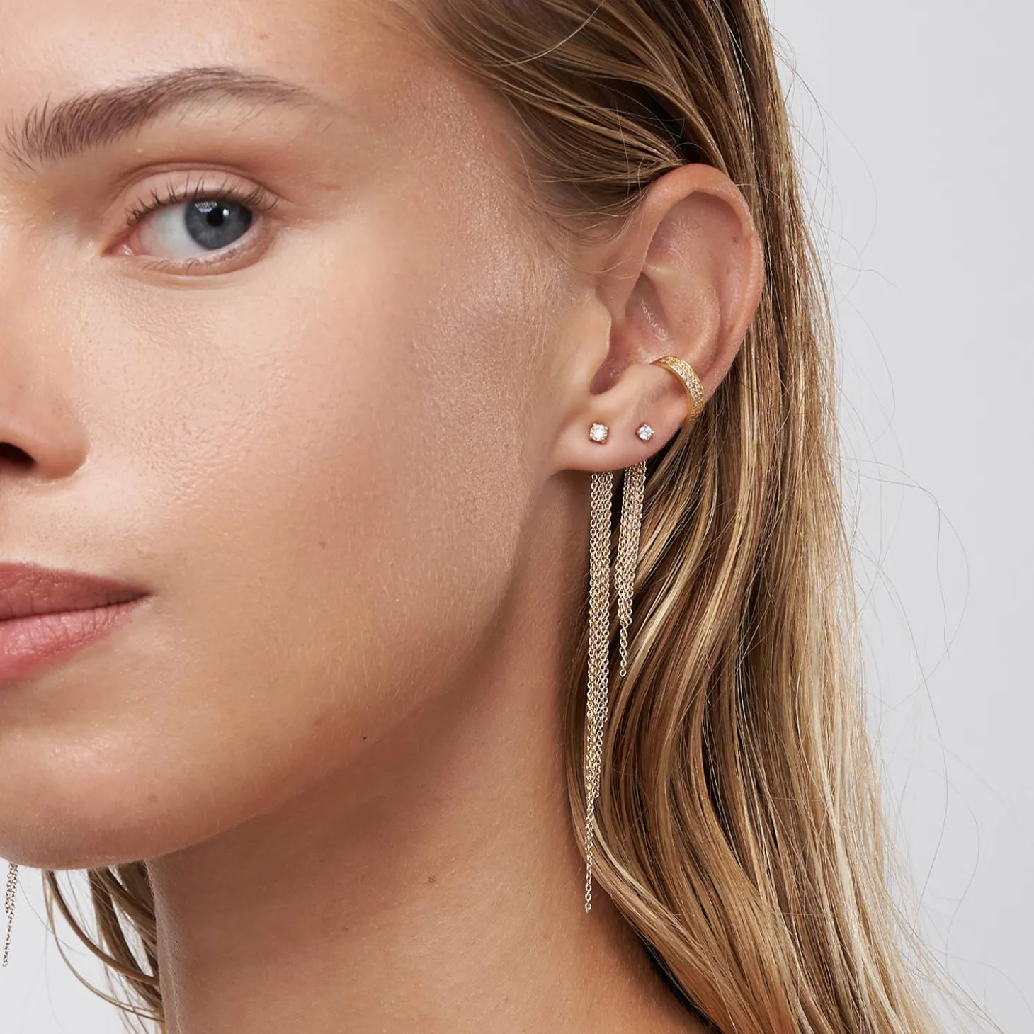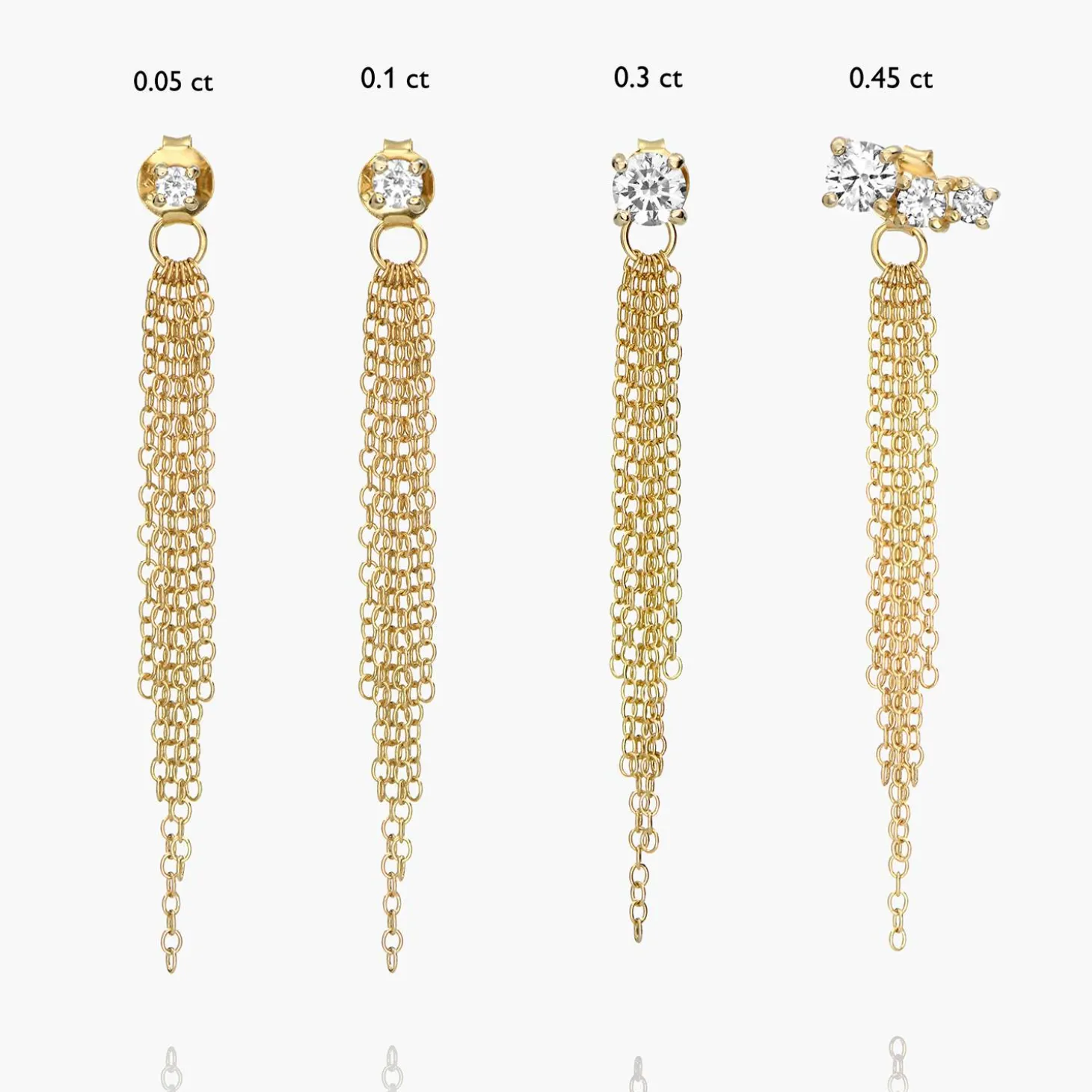 Discover the allure of our Mimosa Tassel Stud with 0.05 CT Diamond in Gold Vermeil. A harmonious blend of classic diamonds and modern tassel design, this earring offers unmatched versatility. Mix and match with Oak and Luna studs for a personalized look. Available in single or pair, each set includes a tassel and matching stud with a secure closure. Elevate your style with timeless elegance and a touch of glamour.