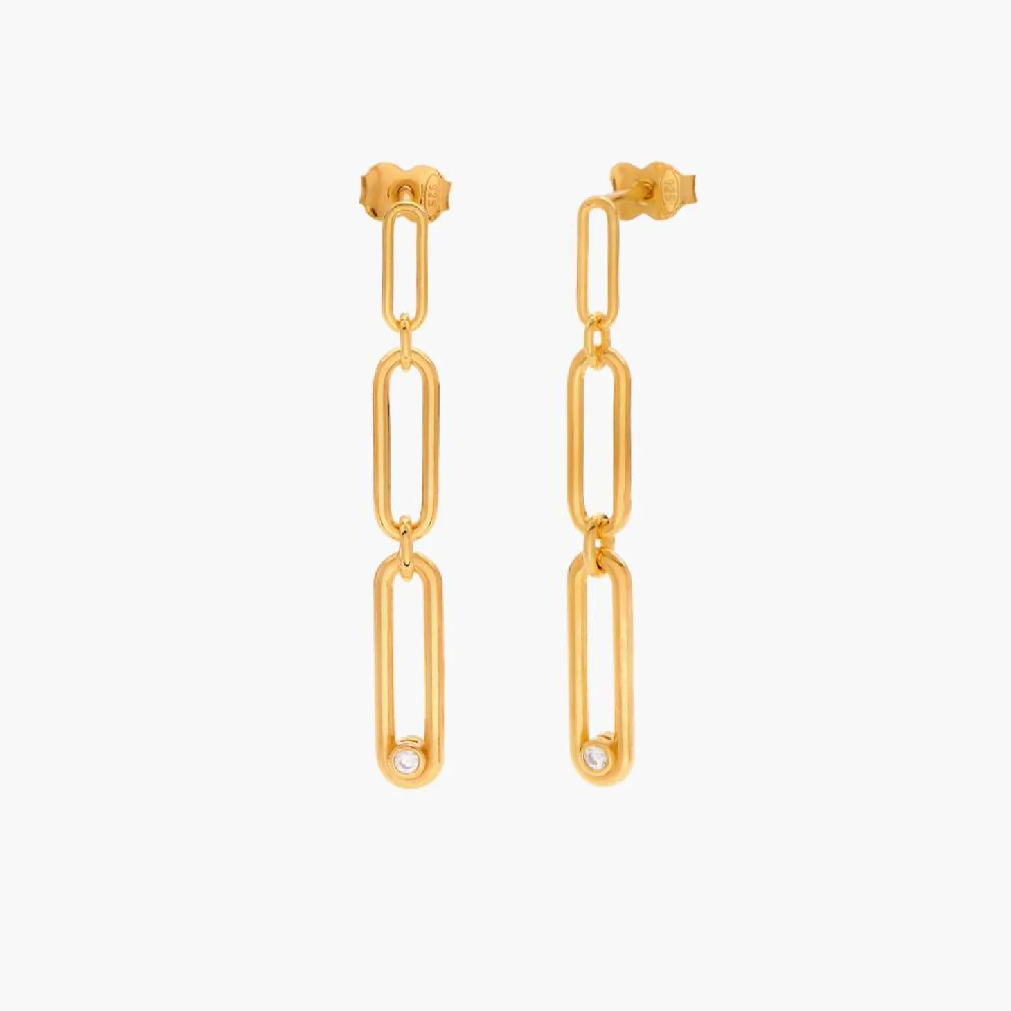 Introducing our exquisite Paper Clip Drop Stud Earrings in Gold Vermeil, adorned with mesmerizing Cubic Zirconia stones.