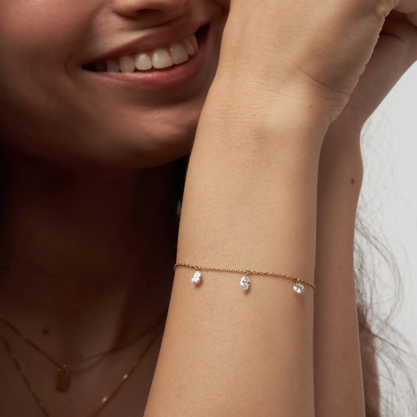 Unveil a world of refined luxury with the Personalized Capri Floating Diamond Bracelet in Gold Vermeil.