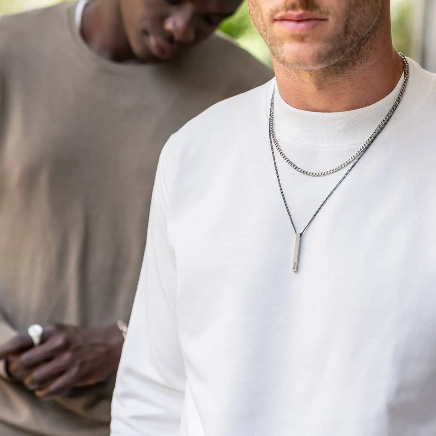 The Pillar Men’s Bar Necklace in Silver made from a panzer chain and is a classic piece that any man should own. Great for layering with other short and longer style necklaces or on its own, this elemental, dynamic piece completes an everyday look.
