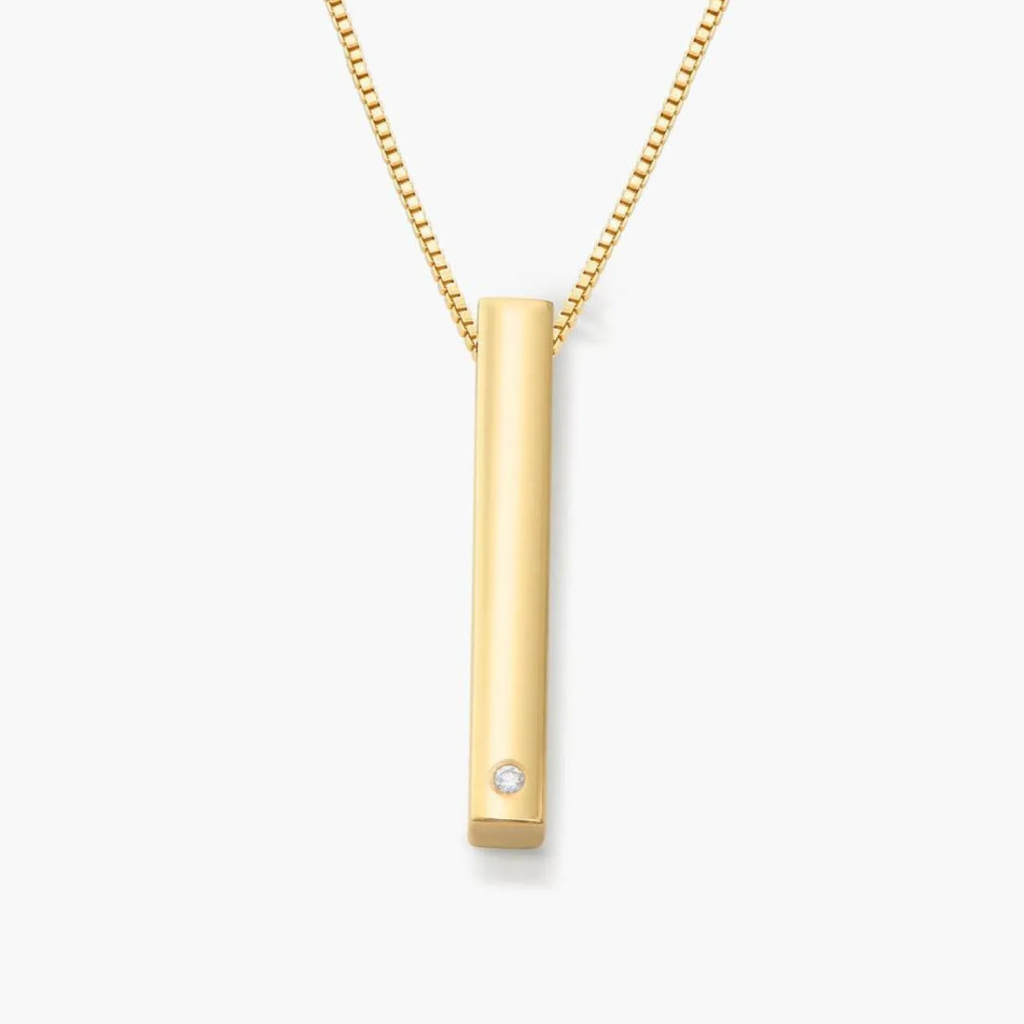 Accentuate your neckline with this stunning pillar bar necklace! Customized to perfection and adorned with a round diamond that lends just the right amount of sparkle, this elegant, versatile necklace is made with Gold Vermeil, which is thicker and more durable than standard gold plating. It stands up to your busy schedule and is easy to reach for – wherever you’re going and whatever you choose to wear!
