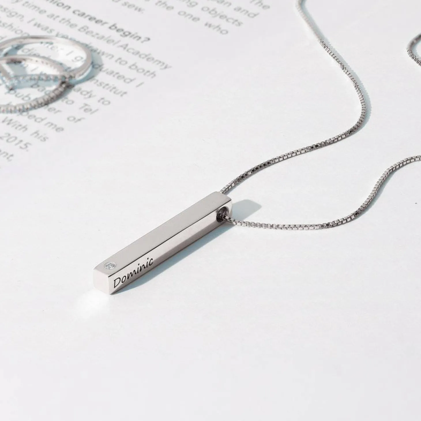 Customize Me! This necklace lets you customize with a vertical words on up to 3 different sides, with up to 15 letters each. Our artisans engrave these necklaces exactly as ordered, so please be sure to double-check formatting. If you want to have an inscription empty (backside, for example) the field should be filled with ” —“.