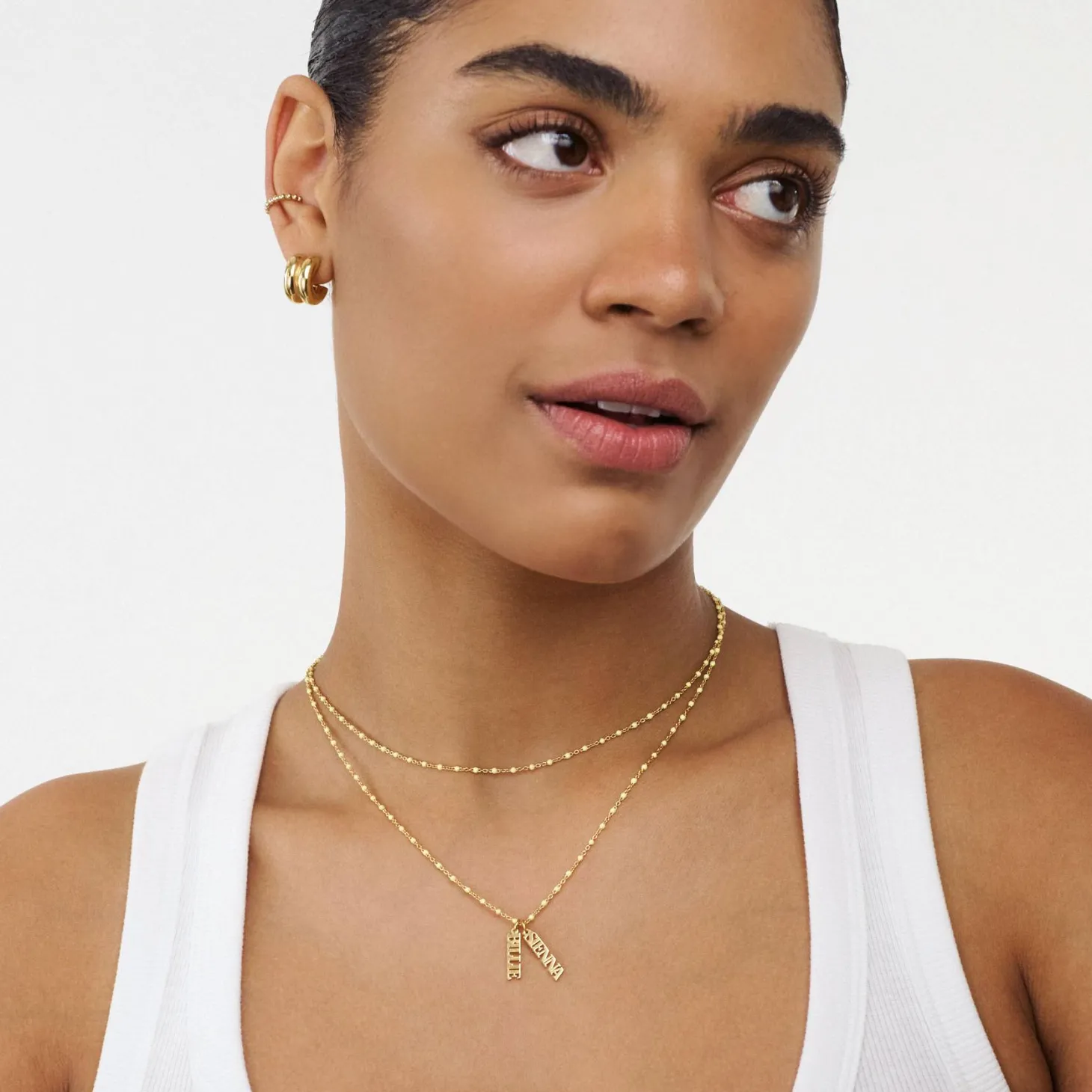 The Soltale Butter Singapore Chain Name Necklace in gold vermeil adds a luxurious warmth to your summer accessories. Personalize this necklace with up to 3 names, each highlighted by a soft butter enamel charm. The gold vermeil finish provides a rich, sophisticated glow, making this a versatile and stylish piece to wear all season long.