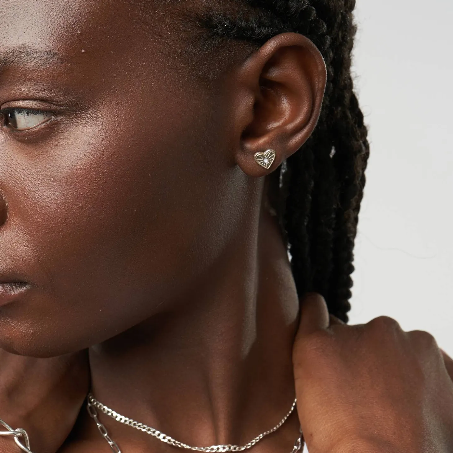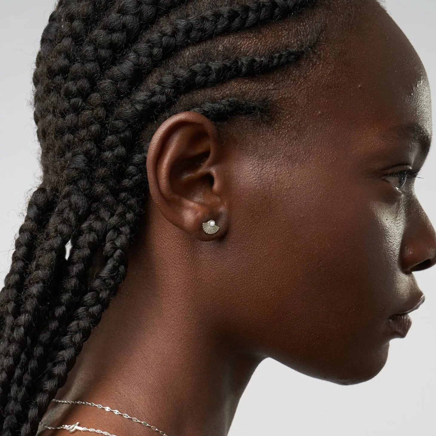 The Spiritual Stud Earrings set with Diamonds in Silver is an exquisite set of earrings that adds a touch of elegance and spirituality to any outfit.