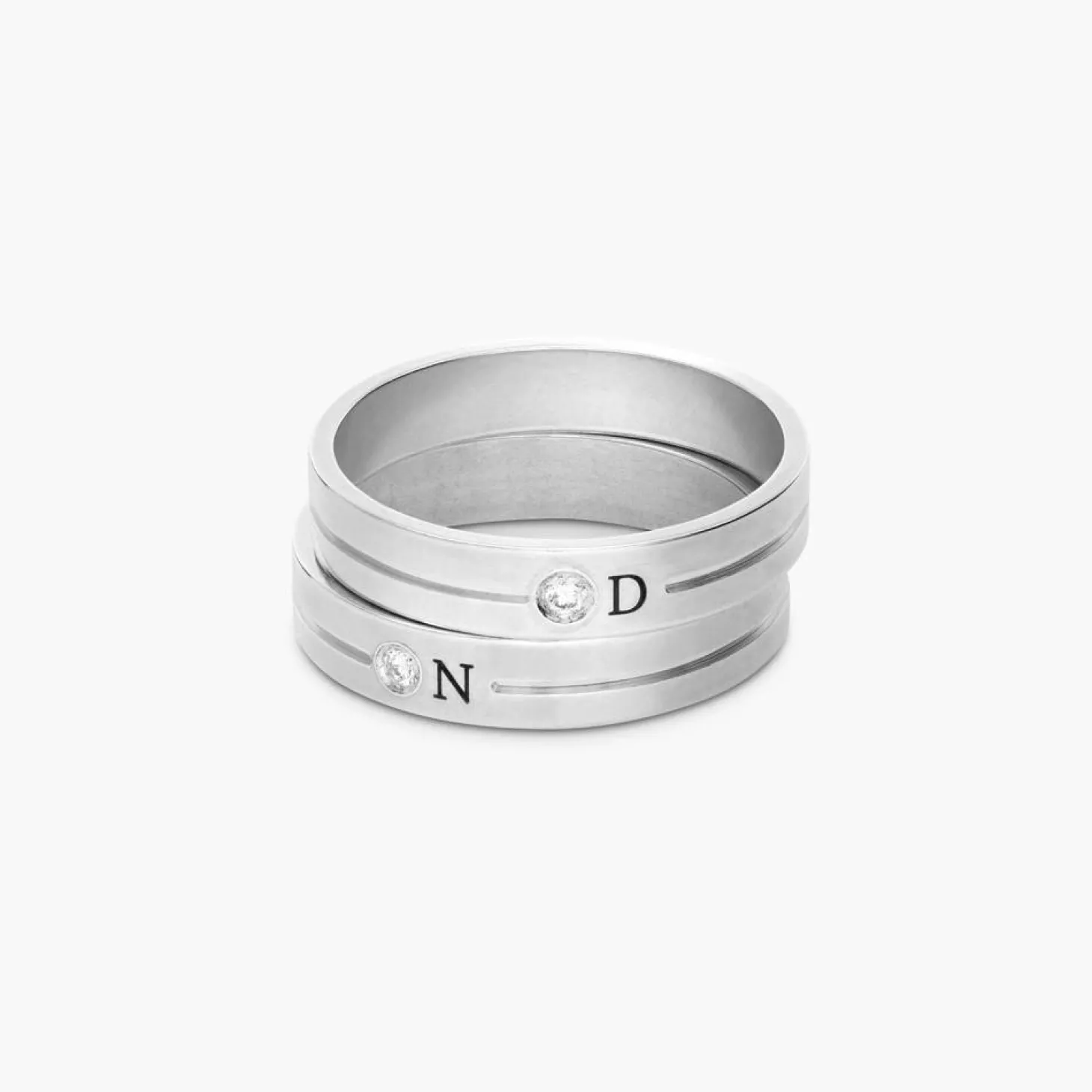 Enhance your collection with our Stackable Engraved Soul Band Ring in Silver. Featuring a single diamond and customizable engraving for one initial, this elegant band is perfect for stacking. Create a personalized set with up to three rings, blending seamlessly with other metals. Check more rings for woman here.