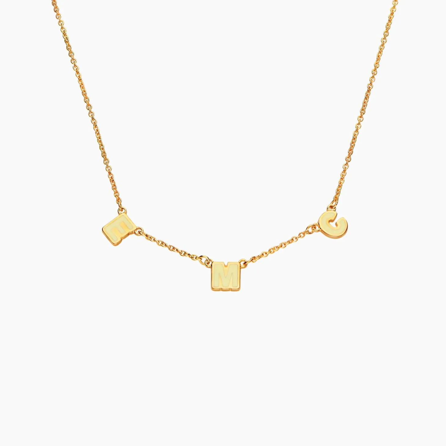Elevate your look with the Sunrise Inez Initial Necklace in Gold Vermeil. Customize with 1-4 initials and select from Cream, Lavender, or Burgundy enamel colors. This luxurious necklace combines elegance with personal sentiment, making it a treasured addition to your jewelry collection.