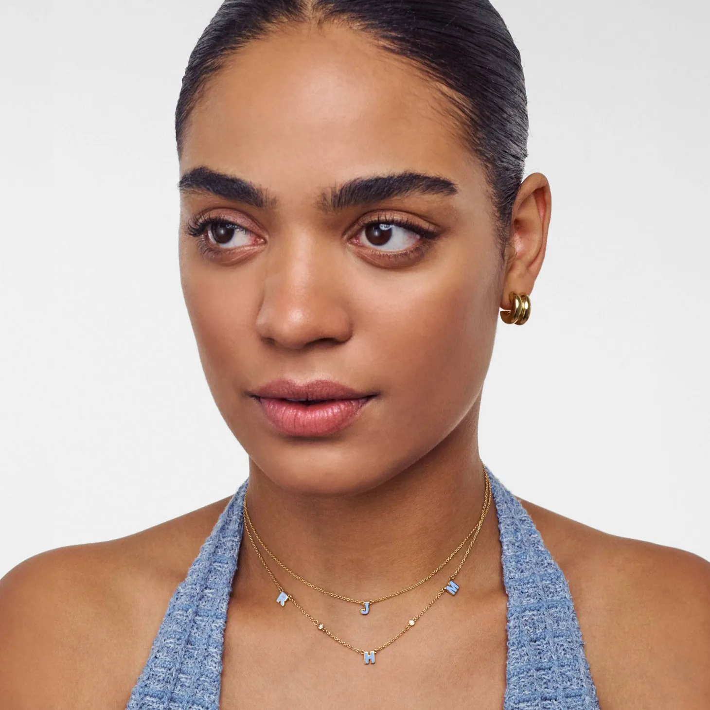 Elevate your style with the Sunrise Inez Initial Necklace in Gold Vermeil, featuring diamonds. Personalize with 1-4 initials and select from Cream, Lavender, or Burgundy enamel colors. This luxurious necklace blends elegance and personal meaning, making it a cherished accessory.