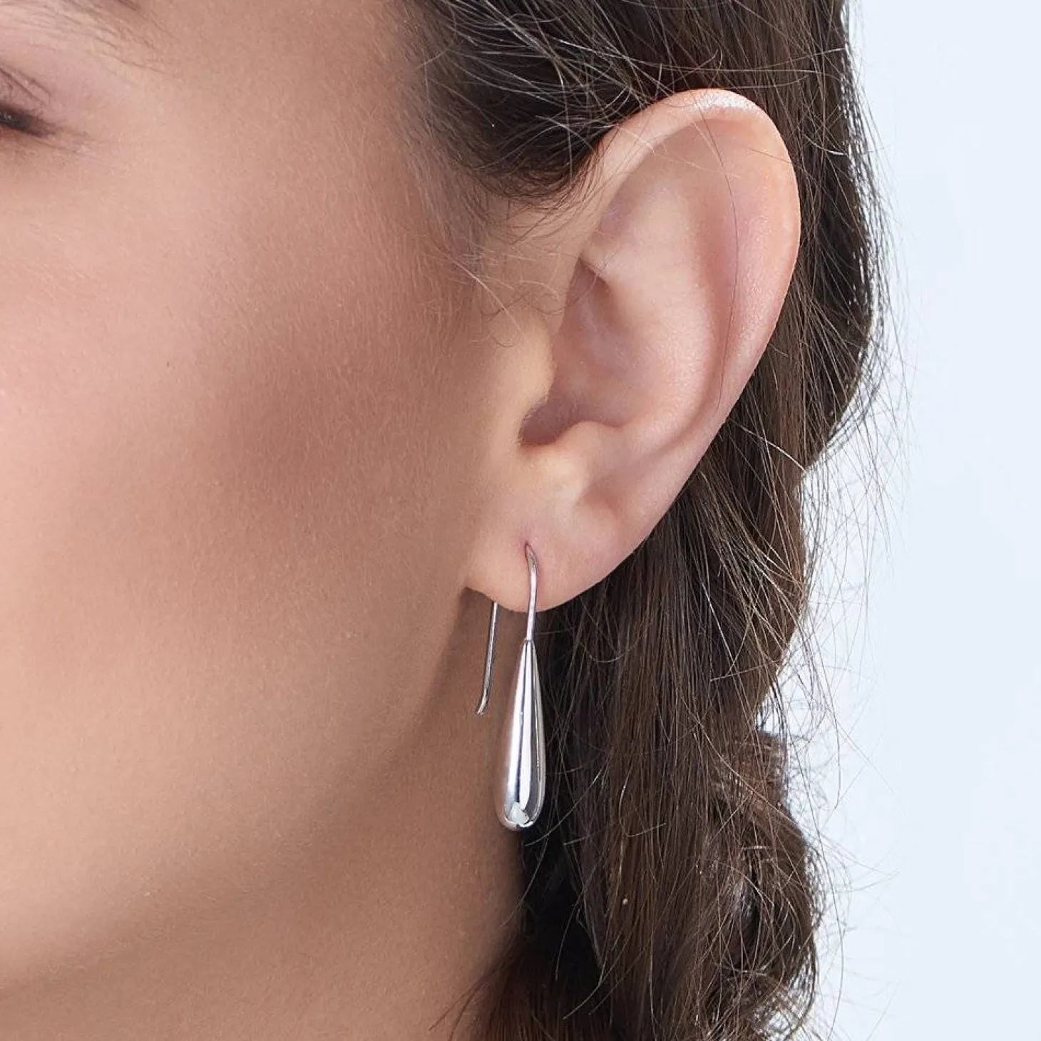 Smooth shape paired with suspense. Pair of two Sterling Silver teardrop earrings is both elegant and modern.