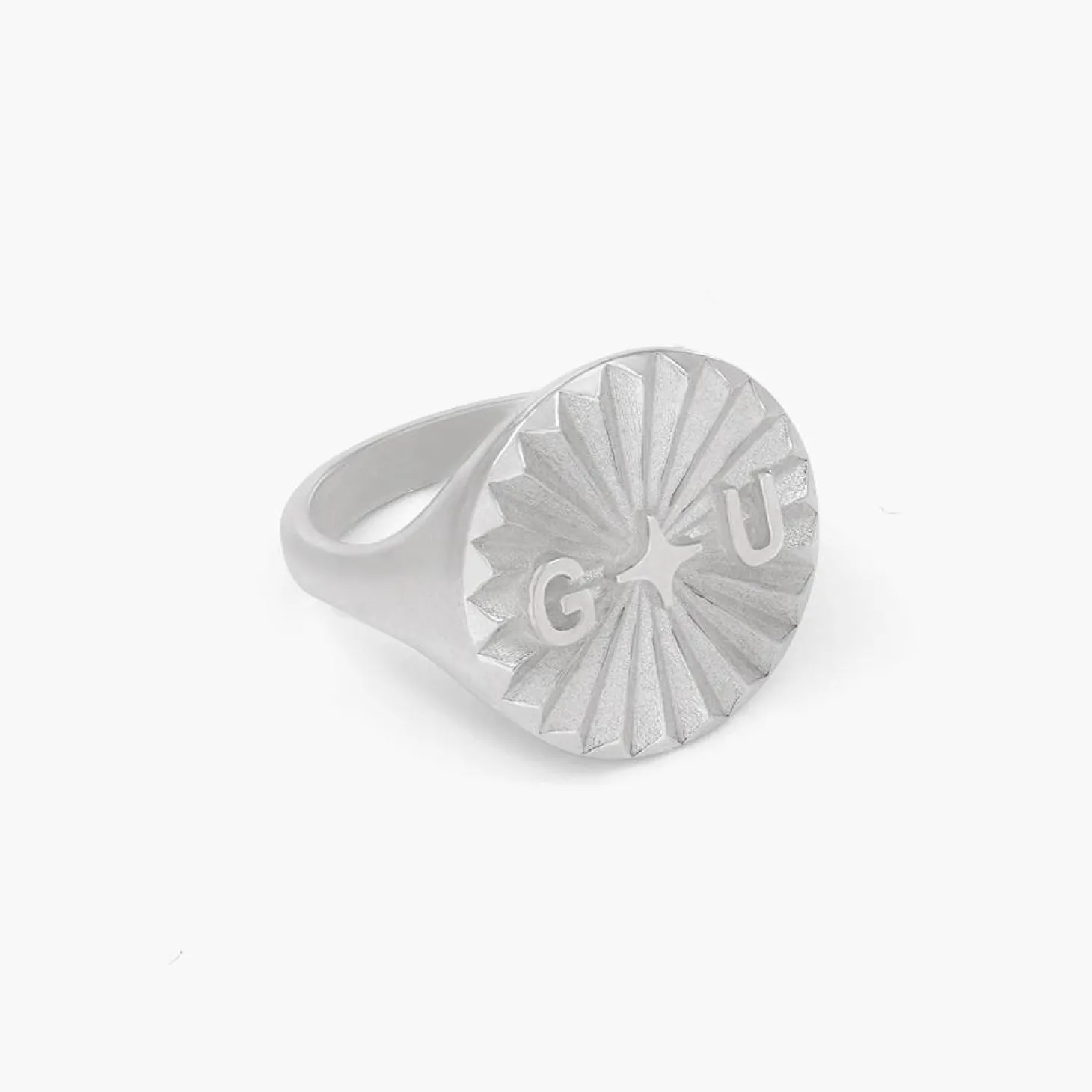 925 Sterling Silver: Timeless and durable, sterling silver is always a classic choice. As pure silver is too soft to last, 925 silver combines 92.5% pure silver and 7.5% copper. Made from high-quality materials, this ring features a beautiful medallion that can be customized with your choice of initials or symbols. Whether you choose one or two initials, this ring is sure to make a statement. Not only is it a stylish addition to any outfit, but it also makes a thoughtful gift for a loved one. The personalized aspect of the ring makes it a one-of-a-kind piece that is sure to be treasured for years to come.