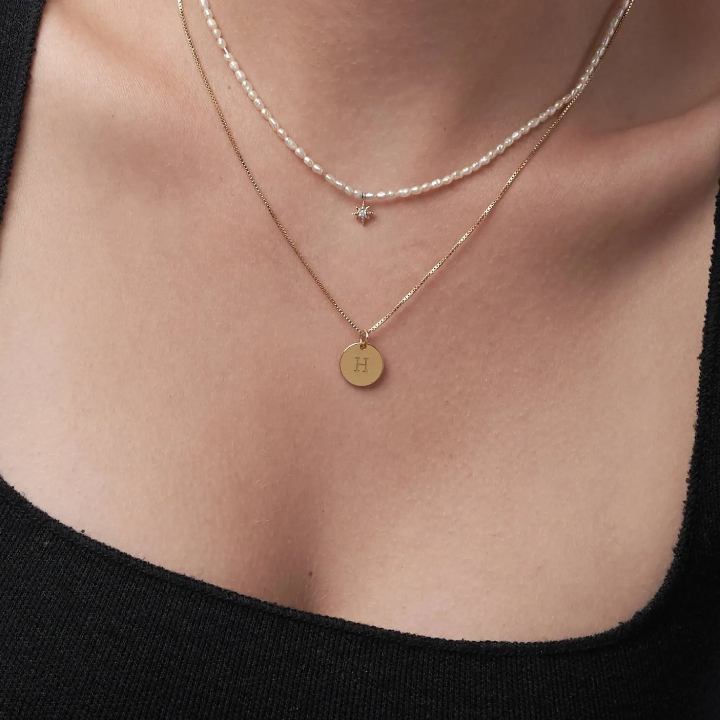 The Custom Initial Necklace in Gold Vermeil features an intricate chain with a dainty pendant that can be customized with a initial of one’s choice (All Caps). Explore more custom necklace pendants from our collections.