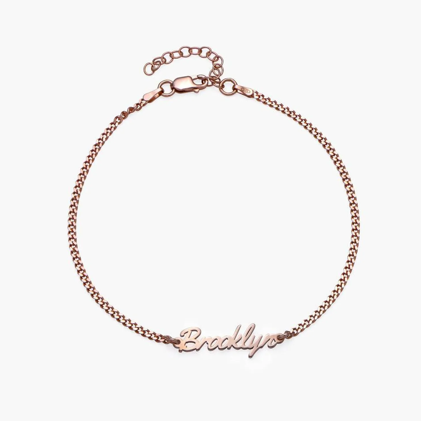 Rose Gold Vermeil: Gold vermeil provides that lux look you love at a great price. This piece has a thick layer of 18K gold (up to 5 times more than regular plating) over 925 sterling silver. Dress up your ankles with this elegant name ankle bracelet. It features a delicate rose gold vermeil chain with a name pendant to accentuate that air of individuality. Perfect for everyday wear and if your fit needs a little pick-me-up.