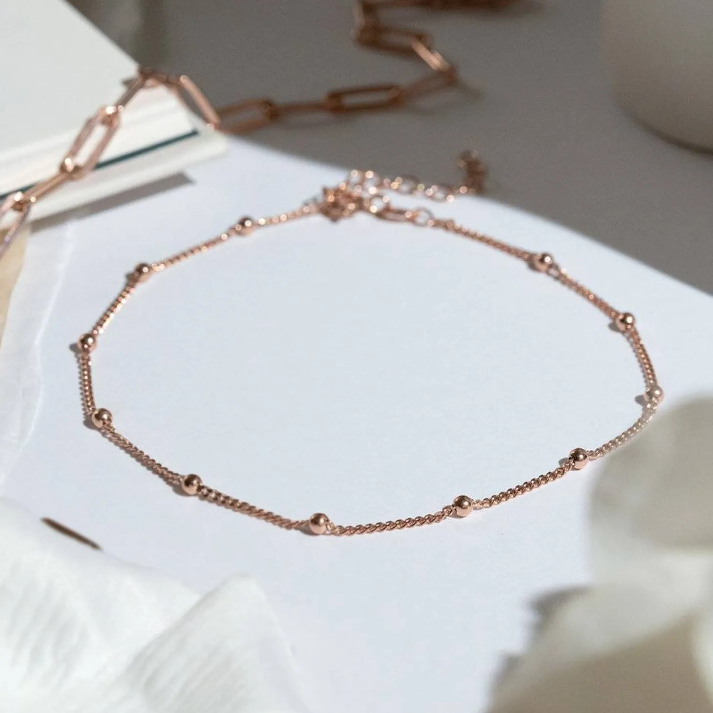 Rose Gold Vermeil: Gold vermeil provides that lux look you love at a great price. This piece has a thick layer of 18K gold (up to 5 times more than regular plating) over 925 sterling silver. Adorn your arm or ankle with this chic bobble chain anklet/bracelet. It’s a classic must-have for your collection, especially if you’re looking to invest in jewelry you can wear to any occasion. Fashioned in gold vermeil, it offers excellent quality without breaking the bank.