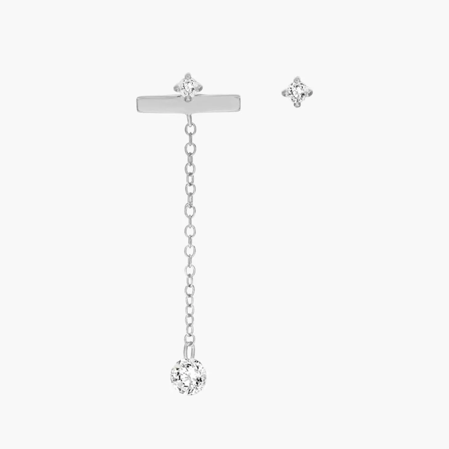 Discover allure with our Capri Floating Diamond Stud Earrings in Silver. 925 Sterling Silver: Timeless and durable, sterling silver is always a classic choice. As pure silver is too soft to last, 925 silver combines 92.5% pure silver and 7.5% copper. Adorned with a top 0.05ct diamond and a captivating 0.3ct diamond at the edge, these earrings define timeless elegance. Choose your diamond cut – pear, marquise, or round – and elevate your style with sophistication that shimmers.