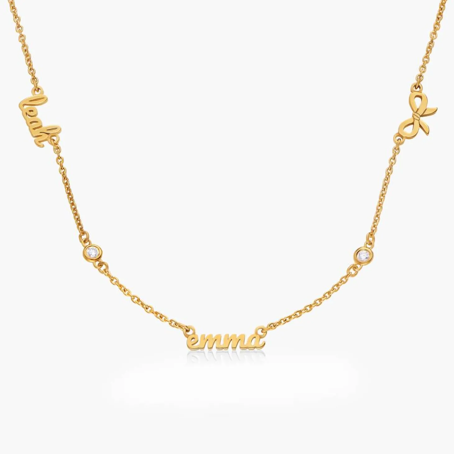 This gold vermeil necklace pairs personalization with sparkle. Add up to 3 names and 1 charm of your choice, enhanced with a dazzling diamond accent. Choose from symbols like a cross or snowflake to create a chic, heartfelt piece that shines as bright as your memories. Discover more multi name necklaces for woman in gold and silver here and shine even more wherever you go.