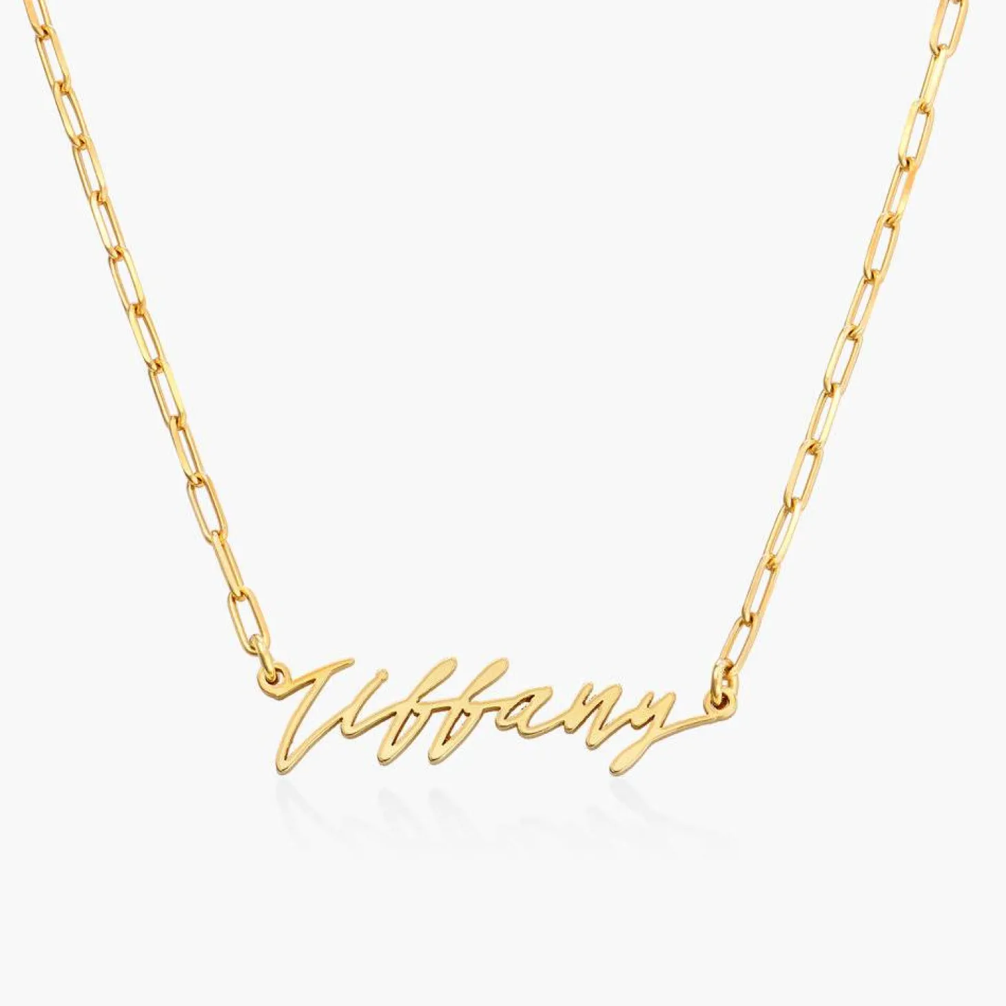 The Coco Name Link Necklace in Gold Vermeil adds a new and unique touch to a classic link chain with its option of customizing with the word or name of your choice with a chic cursive scripture.