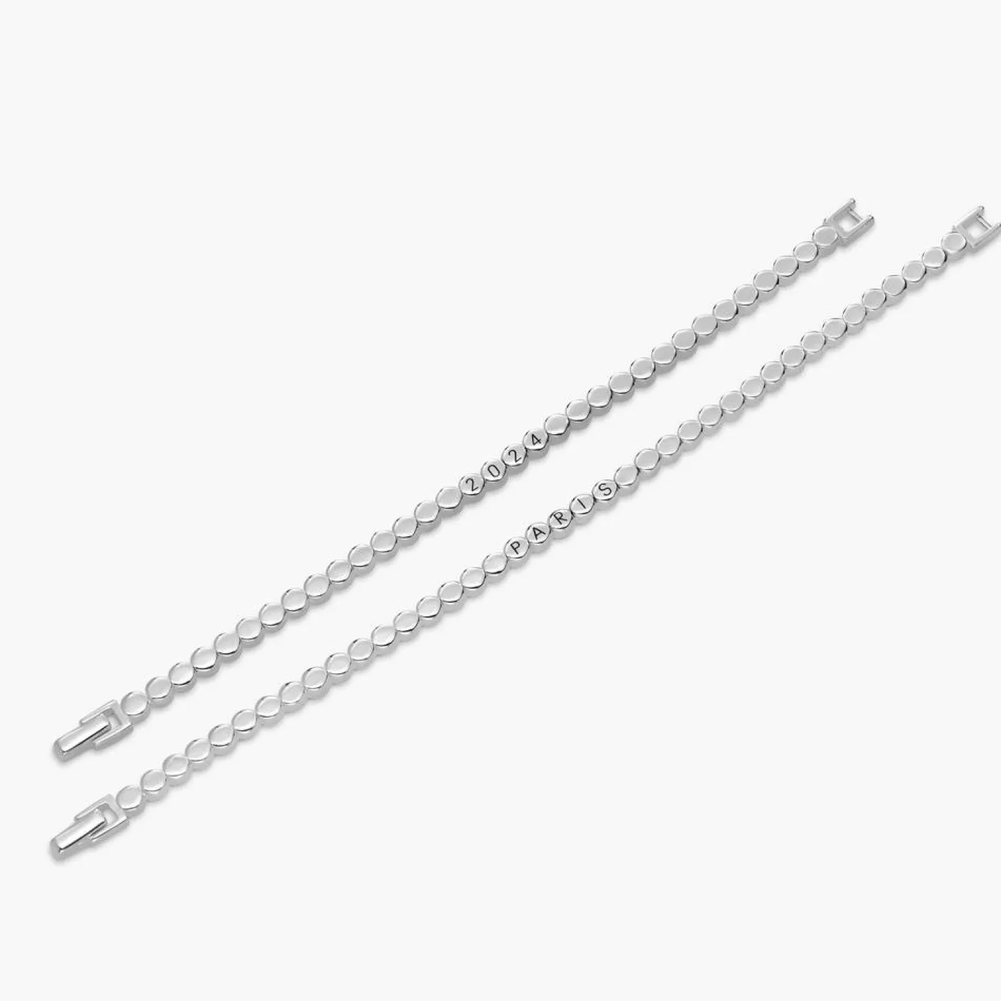 Introducing our Engraved Dot Bracelet in shimmering Silver. Customize with up to 10 letters. Classic and elegant, this piece exudes timeless charm and sophistication. Perfect for adding a touch of personalized elegance to any ensemble.