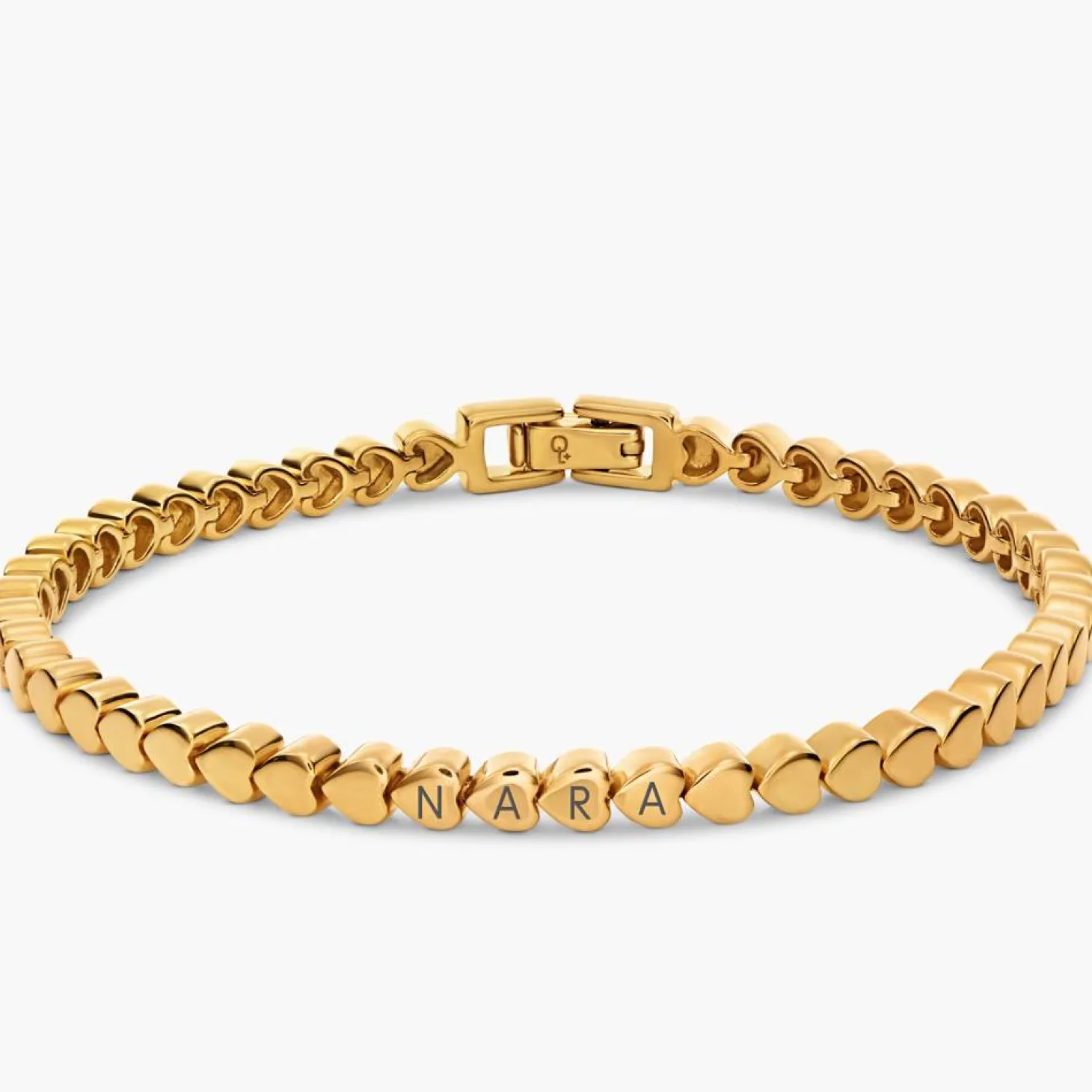 A delicate gold vermeil bracelet with a dotted heart charm. Personalize it with up to 10 initials. Great for stacking and layering, making it a versatile addition to any jewelry collection. Discover more heart jewelry for woman here.