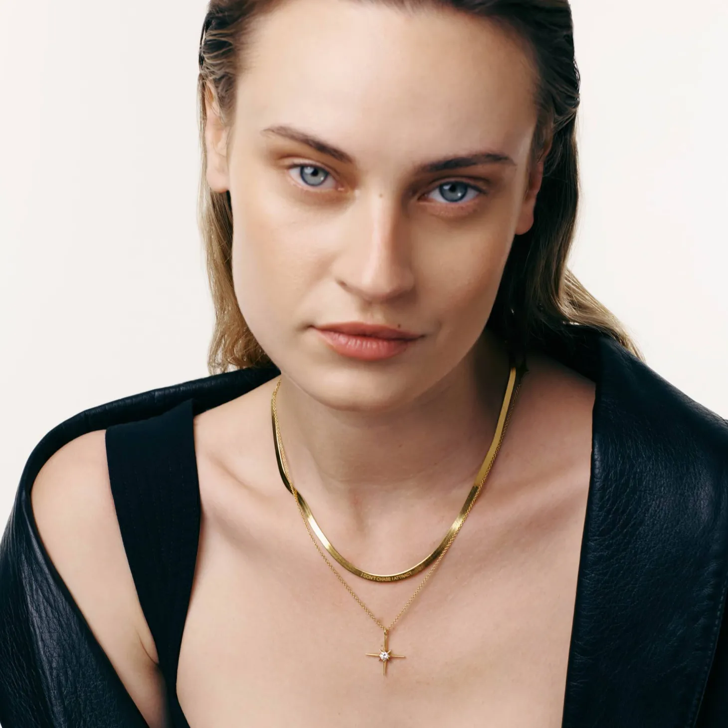 Gold Vermeil: Gold vermeil provides that lux look you love at a great price. This piece has a thick layer of 18K gold (up to 5 times more than regular plating) over 925 sterling silver. Elevate your style with personalized engravings, creating a unique and meaningful piece. The Northern Star design, coupled with the brilliance of the diamond, embodies celestial elegance and individuality. Embrace the enchantment with this finely crafted necklace, a perfect blend of sophistication and sentiment in luxurious gold.