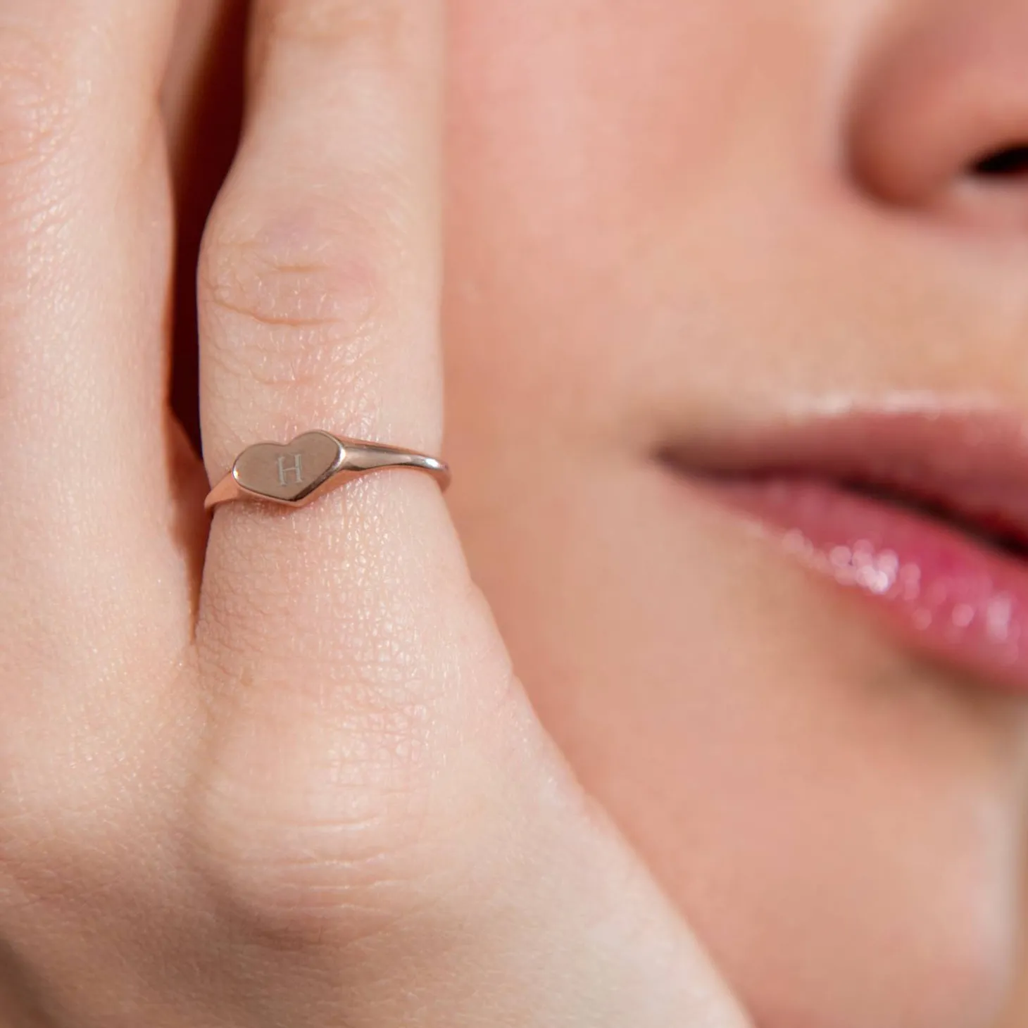The Initial Heart Signet Ring is a unique piece made for when you want a delicate but striking accessory. Crafted from rose gold vermeil and features a classic heart shape with a custom engraving.