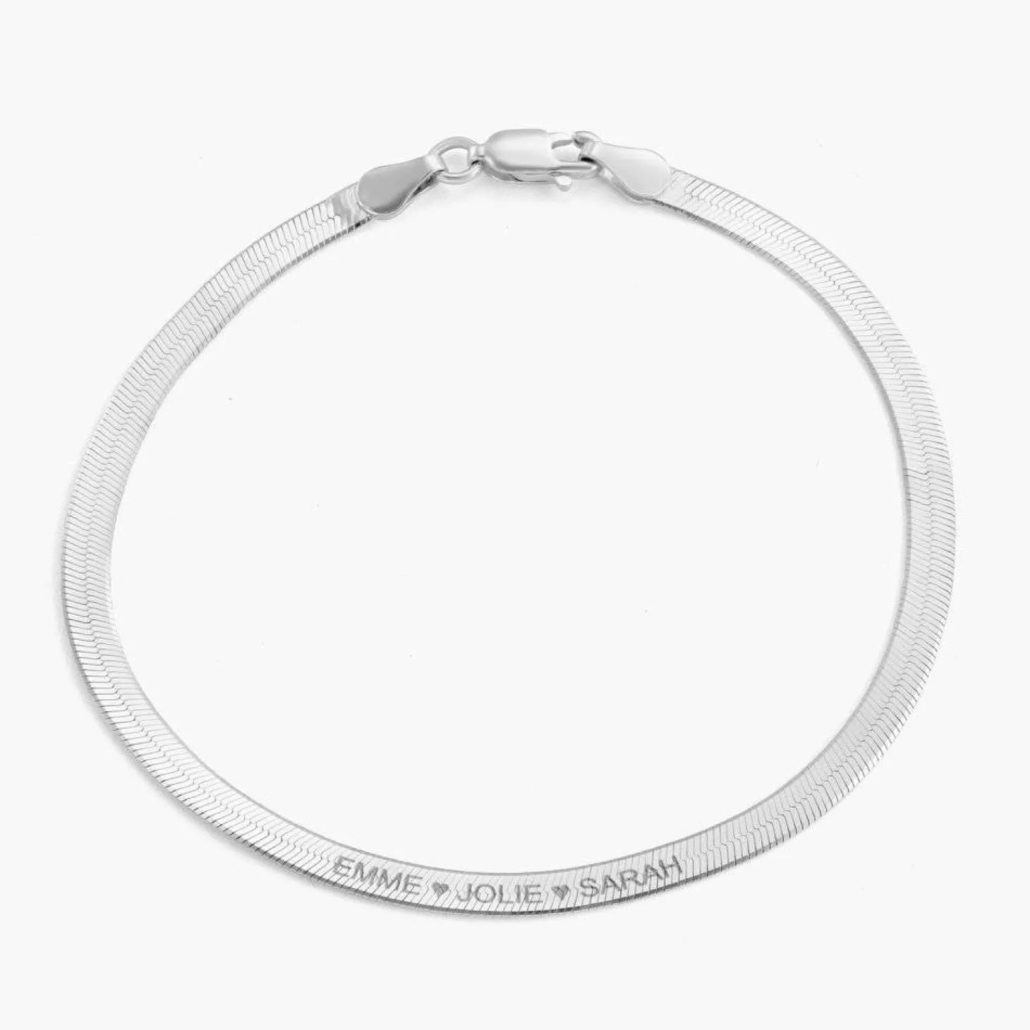 How to make it yours? This beautiful herringbone bracelet can be personalized with any name, date, or even phrase, making it a great choice when you’ve got something to say.