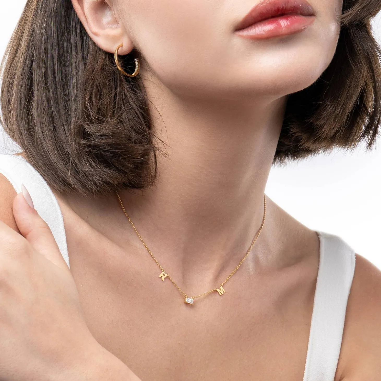 The Inez Initial Necklace with 0.3 ct Premium Diamond in Gold Vermeil – a stunning piece of jewelry that is both luxurious and contemporary. Made of high-quality gold vermeil, this necklace features 1-4 letters with up to 3 diamonds placed between them.
