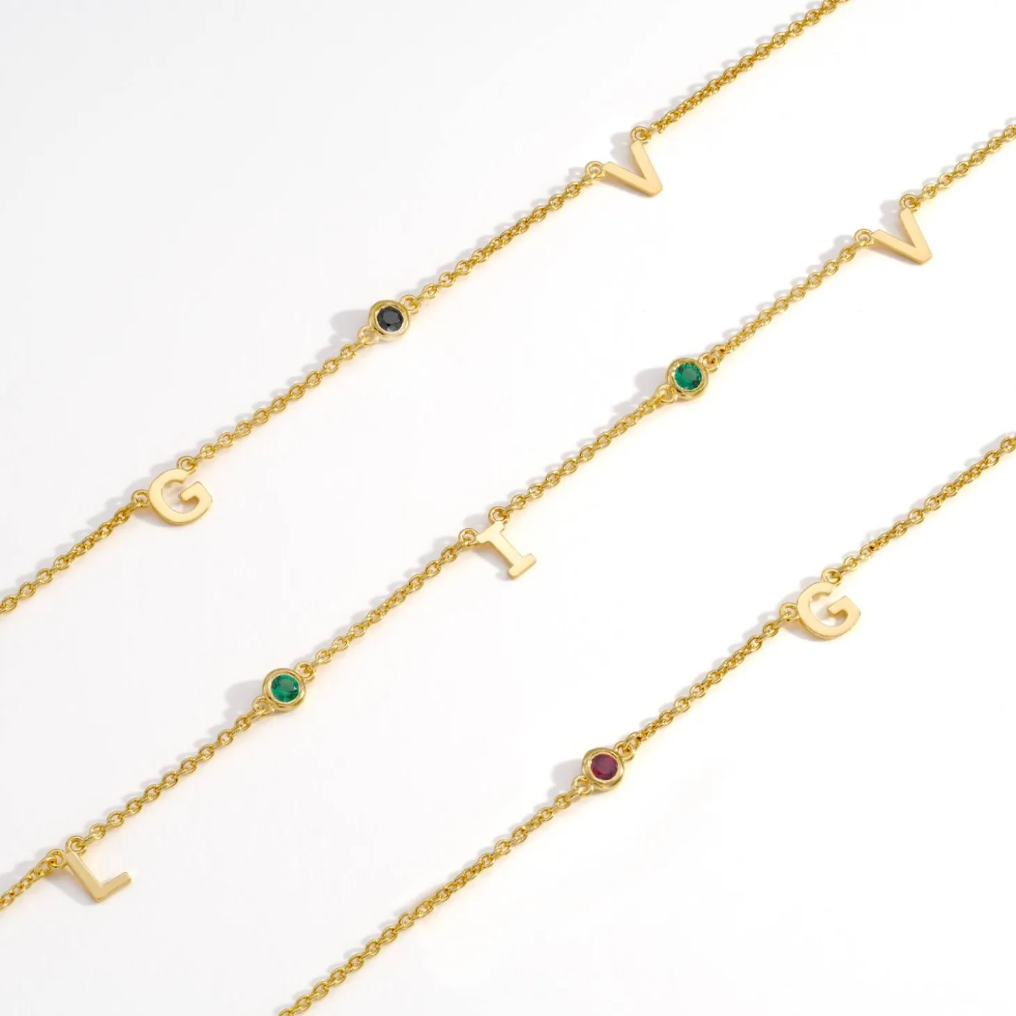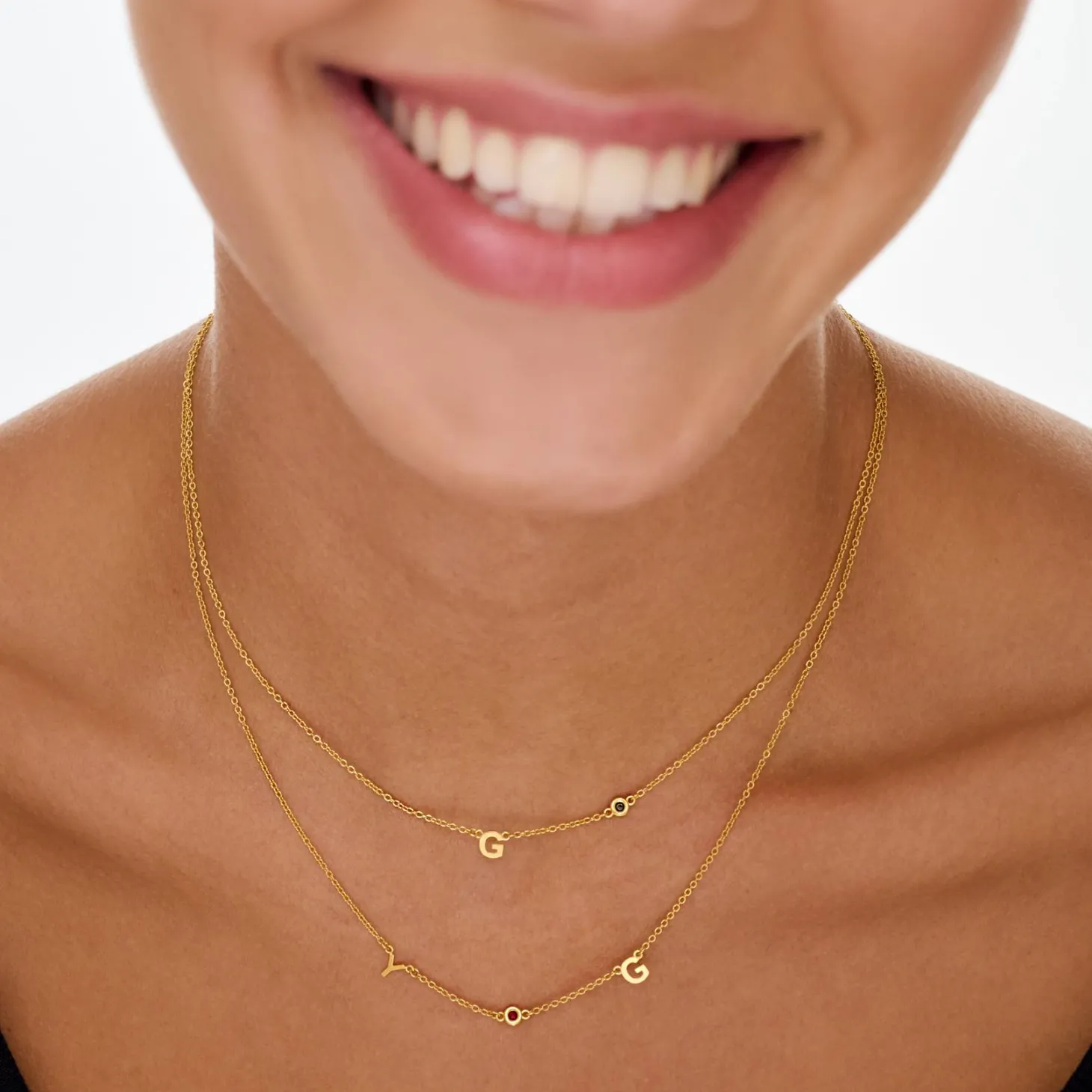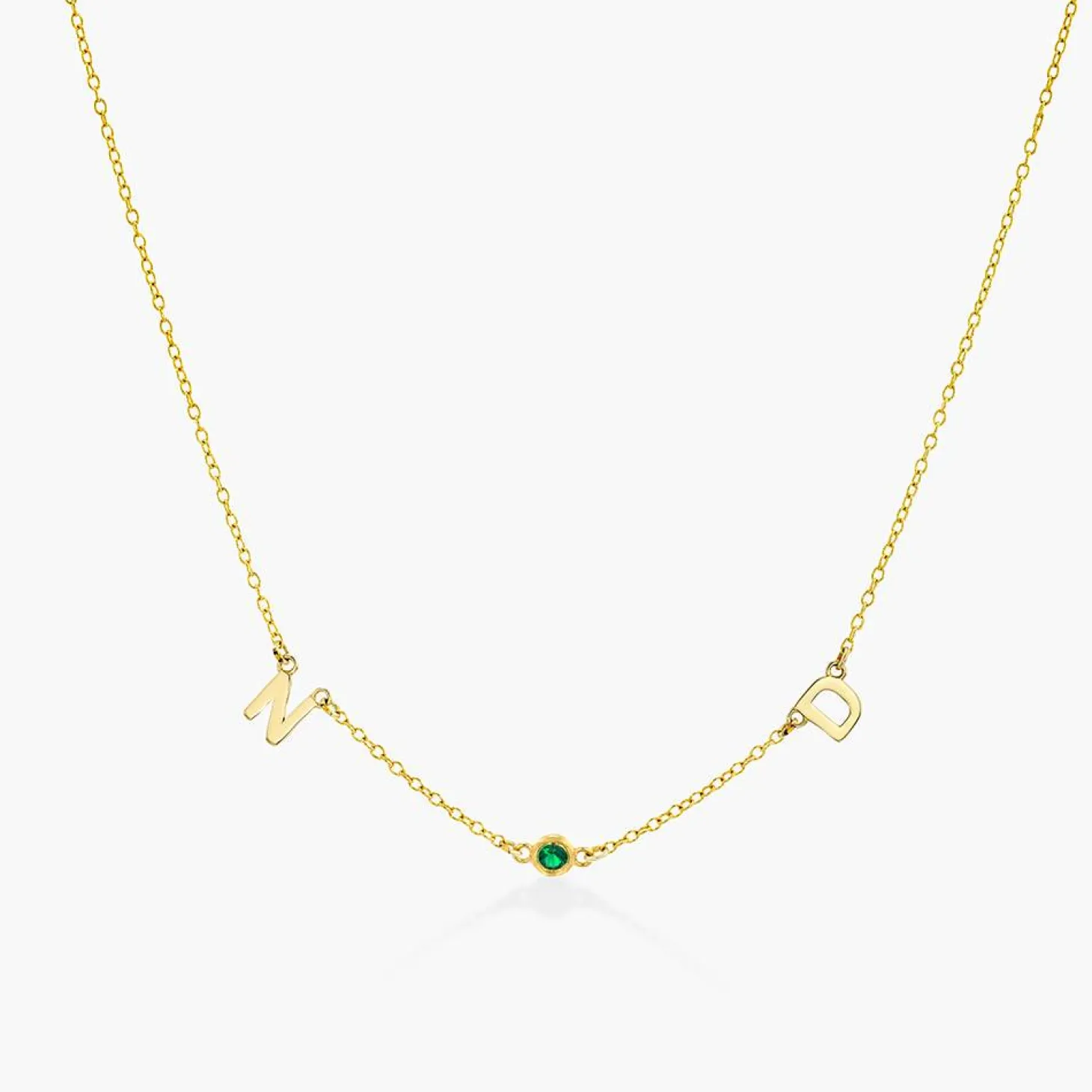 Introducing the Inez Initial Necklace with Gemstones – a stylish and meaningful piece of jewelry that showcases your individuality. Crafted in gold vermeil, this dainty necklace features 1-4 letters of your choice, each adorned with up to 3 gemstones in between.