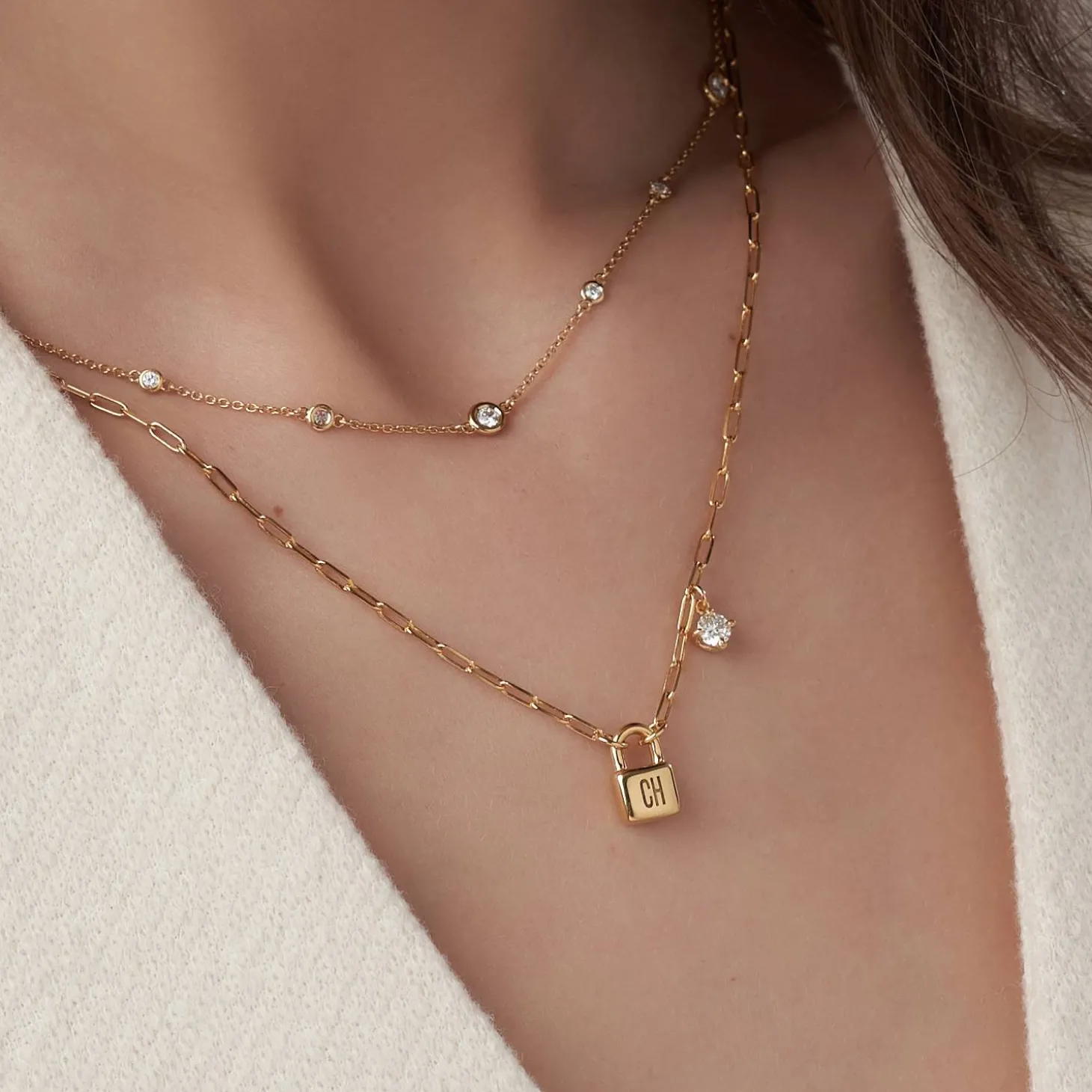 Elevate your style with our Initial Lock Necklace in luxurious Gold Vermeil, adorned with a brilliant 0.3ct diamond. Add a personal touch by engraving 1-3 initials or symbols, reflecting your unique story. This exquisite piece seamlessly blends timeless elegance with meaningful customization, making it a radiant expression of your individuality. Please note that no symbols are added by default.