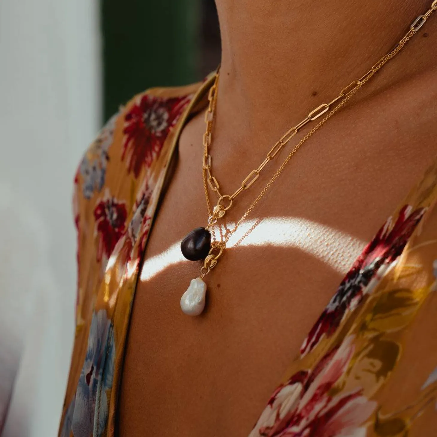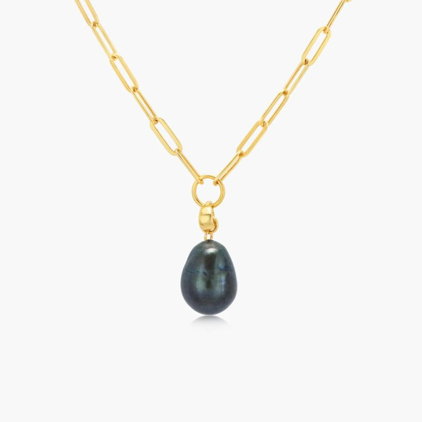 Shining elegance meets everyday glam in the Isla Black Pearl Necklace With Paperclip Chain – Gold Plated, which elevates any outfit. Featuring a delicate, gold-plated link chain with a black pearl charm, it’s definitely a must-have jewelry staple. The lustrous pearl is the centerpiece of this necklace, making a stunning statement. Make it your next go-to piece for casual and dressy occasions. Add it to your collection or give as a gift to a loved one.