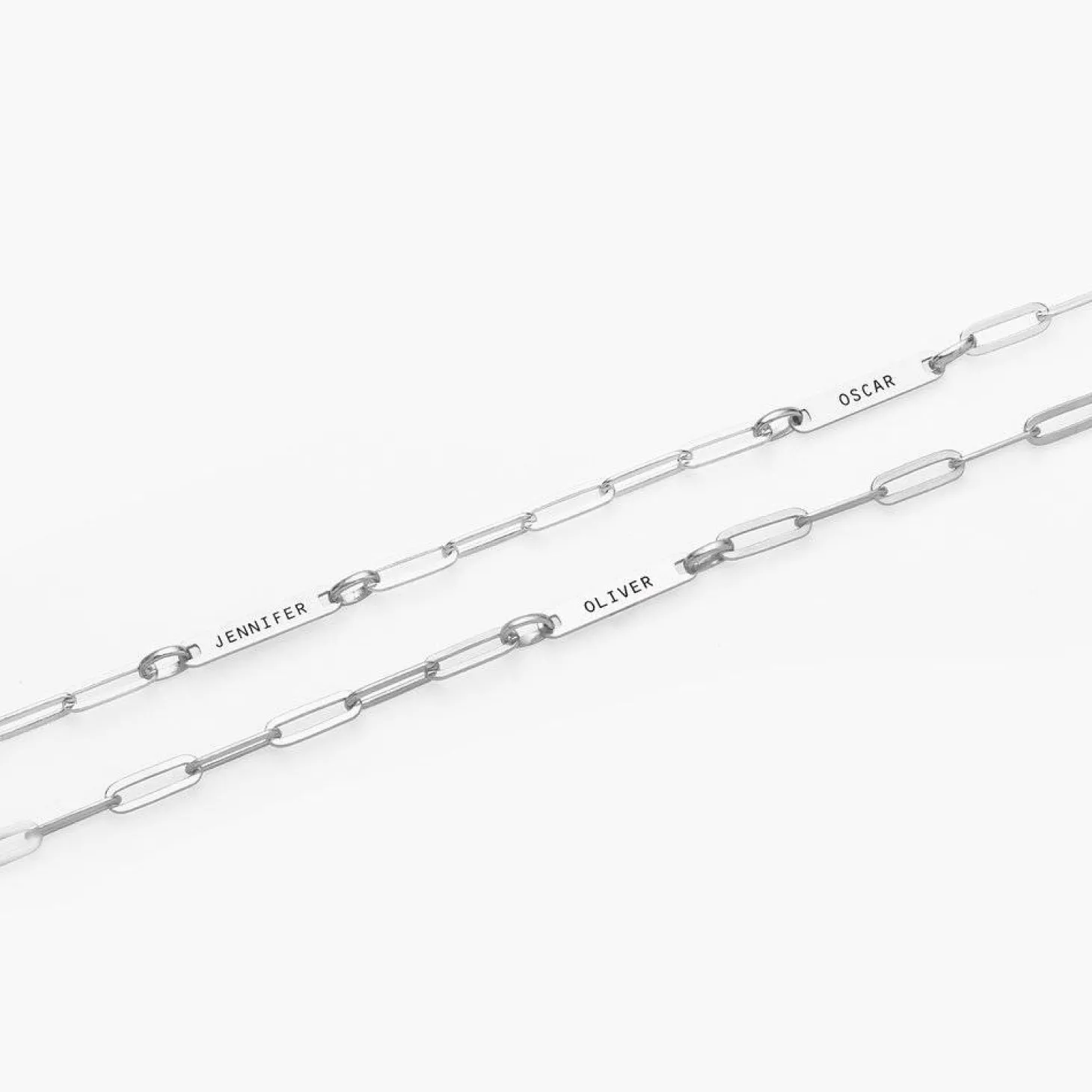 The Ivy Name Paperclip Chain Anklet – Sterling Silver is a piece of art that comes fully personalized. Add the names of you and/or loved ones to 1-2 bar tags – the perfect amount of space to customize it while enjoying a simply stunning, delicate look.
