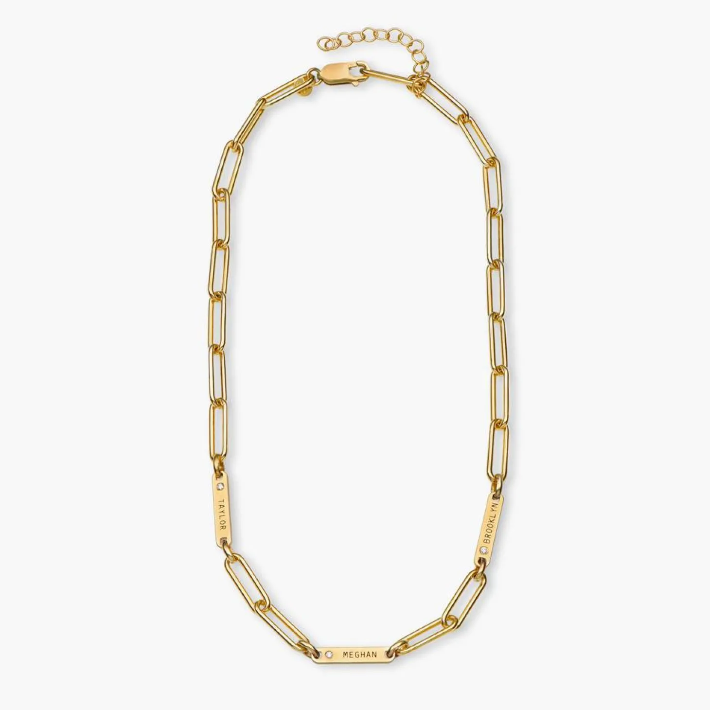 Customize Me! Get this necklace with diamonds personalized via up to four engraved tags that highlight words with up to 10 letters each.