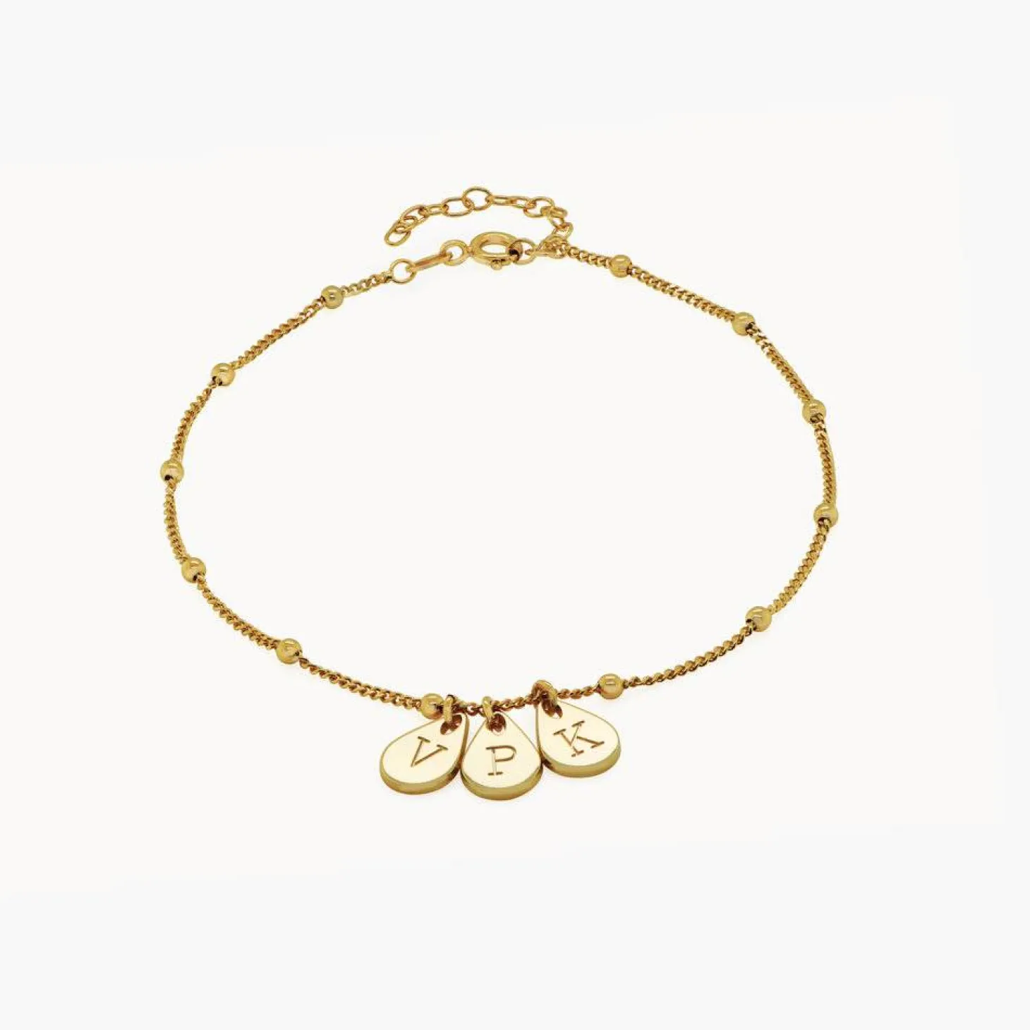 Customize me! The Maren Chain Ankle bracelet can be customized with 1-3 drops, each holding one letter and a lot of meaning.